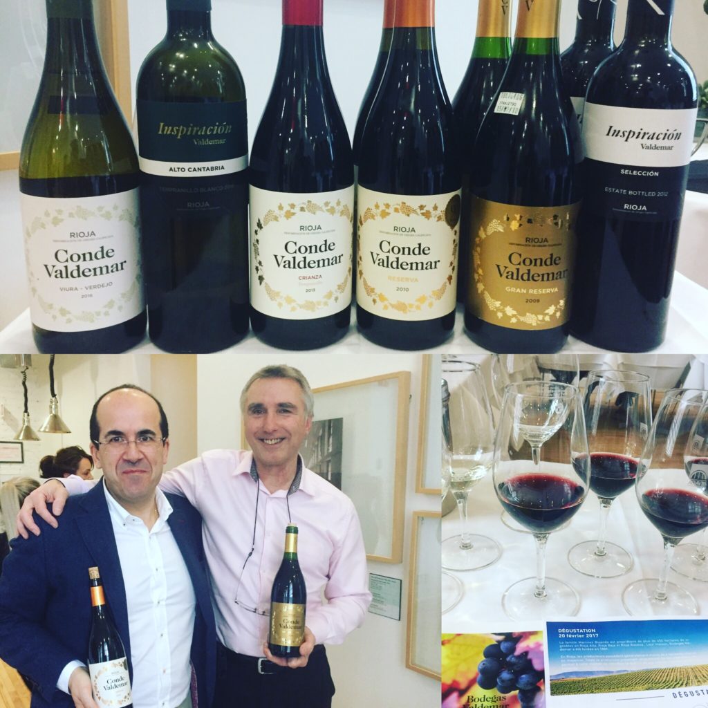 Cette semaine je rencontrais Roberto Alonso Pena, Directeur à l’exportation de la maison Bodegas Valdemar. Le tout était organisé par l’agence Sélections Oeno à l’École des Métiers de la restauration. J’ai eu l’occasion de déguster quelques-uns de leurs vins et d’en apprendre encore sur les vins mythiques de cette maison.