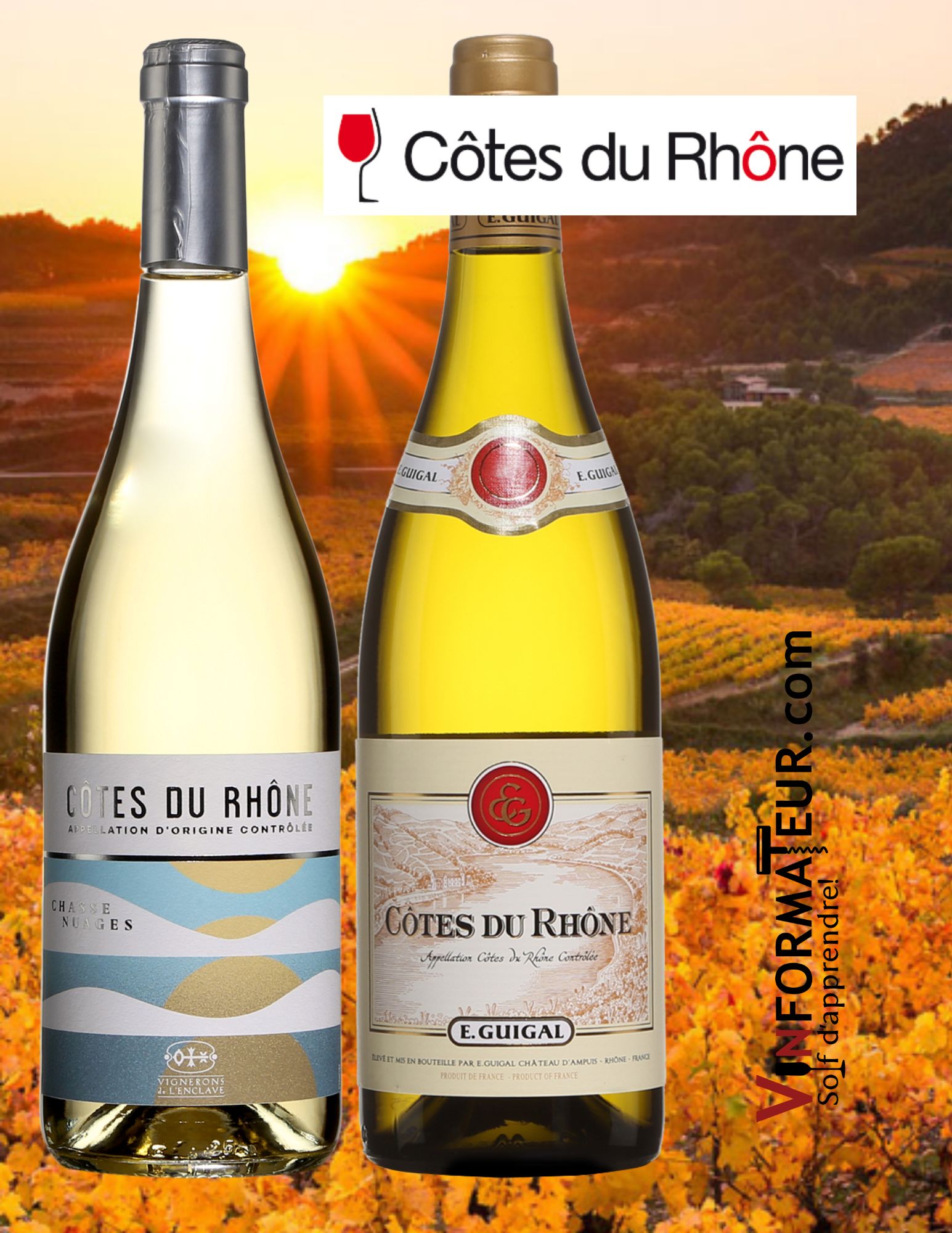 ‘’Dans la vallée du Rhône la proportion de vins blancs n’est à peine que de 7%. Ce n’est pas beaucoup. Nous on y produit beaucoup de vins blancs sans doute parce qu’on est de bons producteurs de Condrieu et du coup on produit beaucoup de Côtes du Rhône blancs ce qui représente 25% de la production de la maison. Pour le Côtes-du-Rhône, le cépage principal c’est le Viognier mais on l’assemble avec du Grenache blanc et de la Clairette. C’est un vin qui n’a eu aucun élevage. Que des cuves inox. On a ce côté exubérant, floral, de fruits frais, beaucoup de fraîcheur et acidité équilibrée’’.