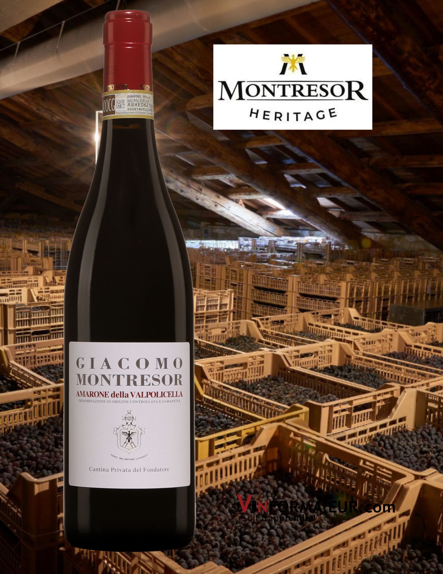 Montresor, Amarone della Valpolicella, Giacomo Montresor, Il Fondatore, 2016, 62,25$, cépages : Corvina 60 %, Corvinone 30 %, Rondinella 10 %, alc. : 15.5%, code SAQ : 14321690.