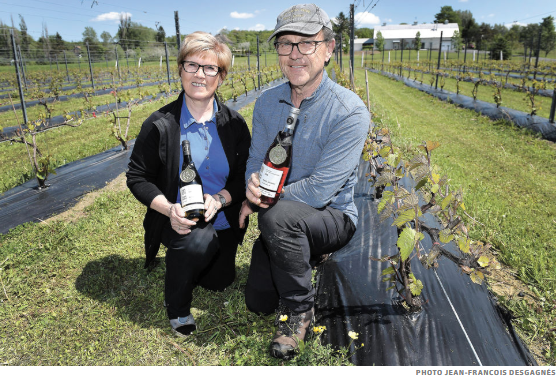 Présentement nous avons 3 blancs, un mousseux, un rouge et un rosé à partir de 3 hectares de vignes. À maturité avec la dernière phase de plantation, nous allons cultiver les 5 hectares. L’objectif c’est de produire entre 25 et 30,000 bouteilles. Les vins que nous allons produire sont déjà déterminés. On ne se mettra pas à développer plein d’autres vins. Peut-être un rouge un peu plus boisé, car actuellement les vignes sont plus vieilles. Mais présentement on va se limiter à ces 6 vins’’.