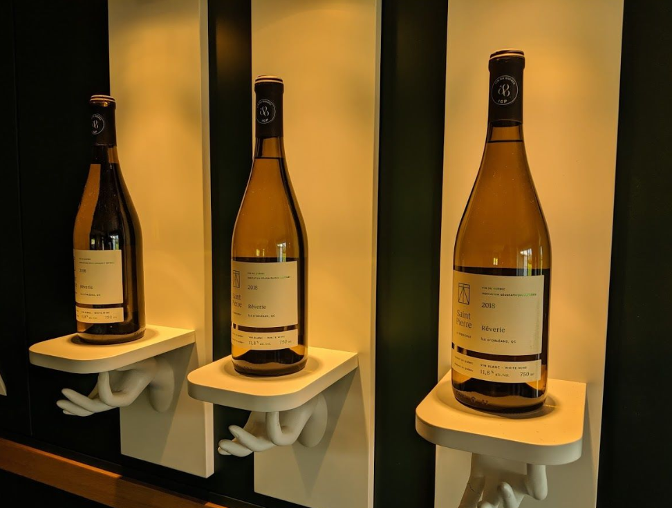 JB : ‘’On est présent dans 2 épiceries fines et on va développer ça cette année. A cause de la Covid, c’est pas mal arrêté. Ici à l’île d’Orléans c’est très touristique. On est capables de vendre 80% de nos vins sur place à cause de l’achalandage. Au niveau de la commercialisation c’est relativement facile, en fait beaucoup plus facile que pour un vignoble qui est site à l’intérieur des terres par exemple. Il passe 1,000,000 de visiteurs par année.