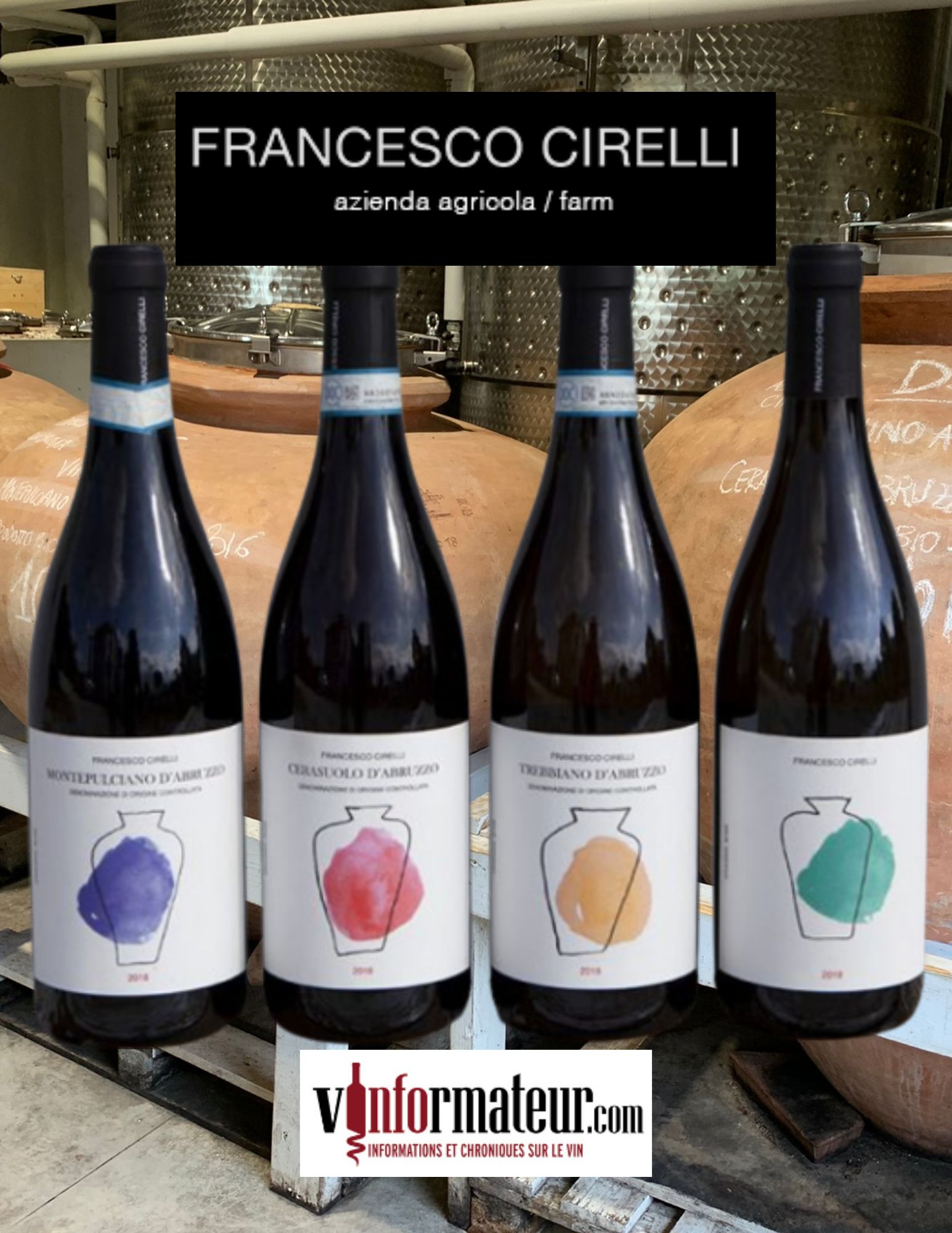 Il s’agit d’un petit producteur (25,000 bouteilles) sur 22 hectares dont le vignoble est situé dans le village d’Atri à seulement 8 kilomètres de la mer. Somme toute Francesco Cirelli peux-être considéré comme un artisan dont l’importance du terroir est primordiale.