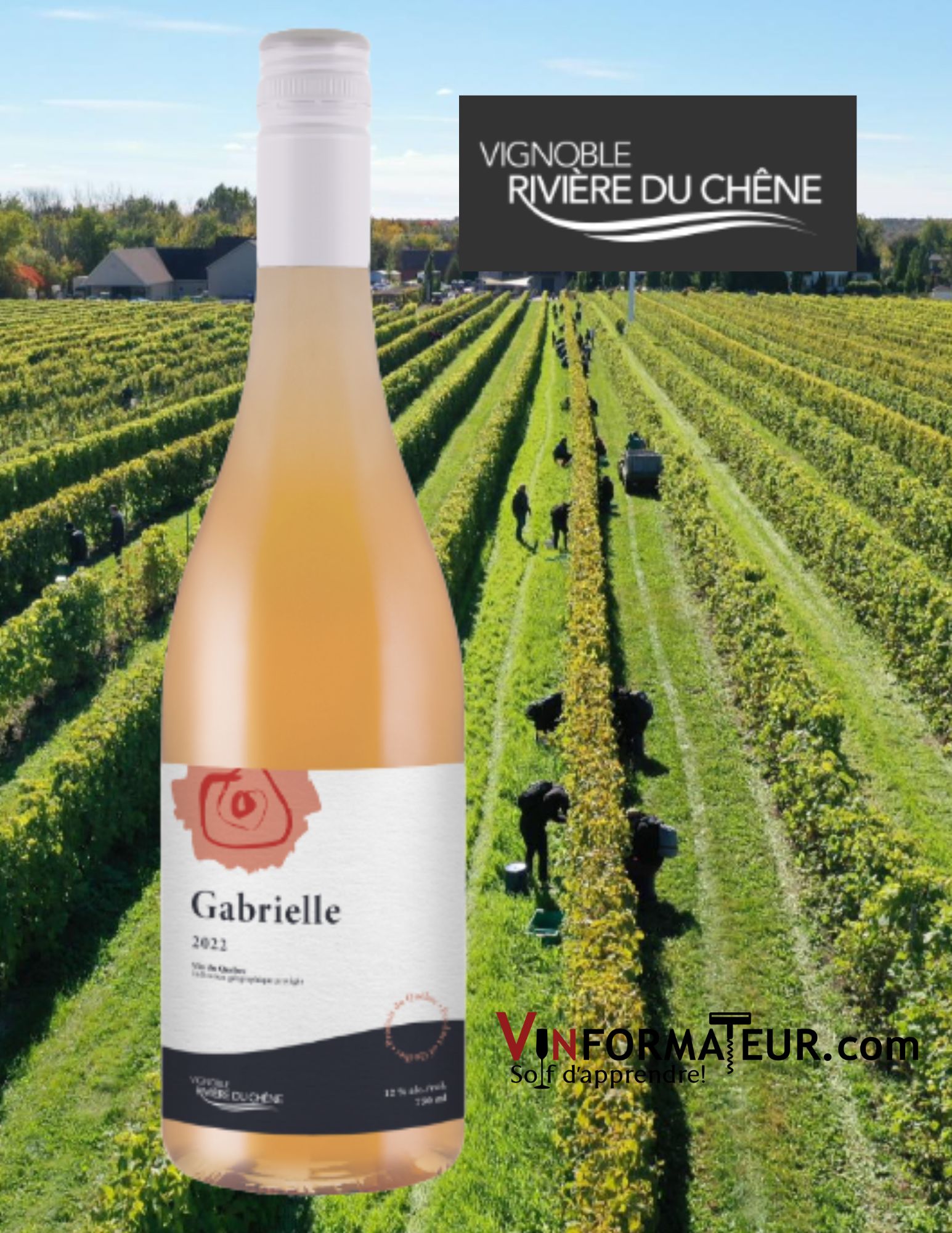 Vignoble Rivière Duchêne, Le Rosé Gabrielle, 2022, 17,25$, vin du Québec IGP, cépages : Seyval noir 47% – Pionnier 25% – Ste-Croix 11% – Frontenac gris 8% – Frontenac rouge 3% – Marquette 3%, Triomphe d’Alsace 3%, sucre : 2.9 g/l, alc. : 12%, code SAQ : 10817090.