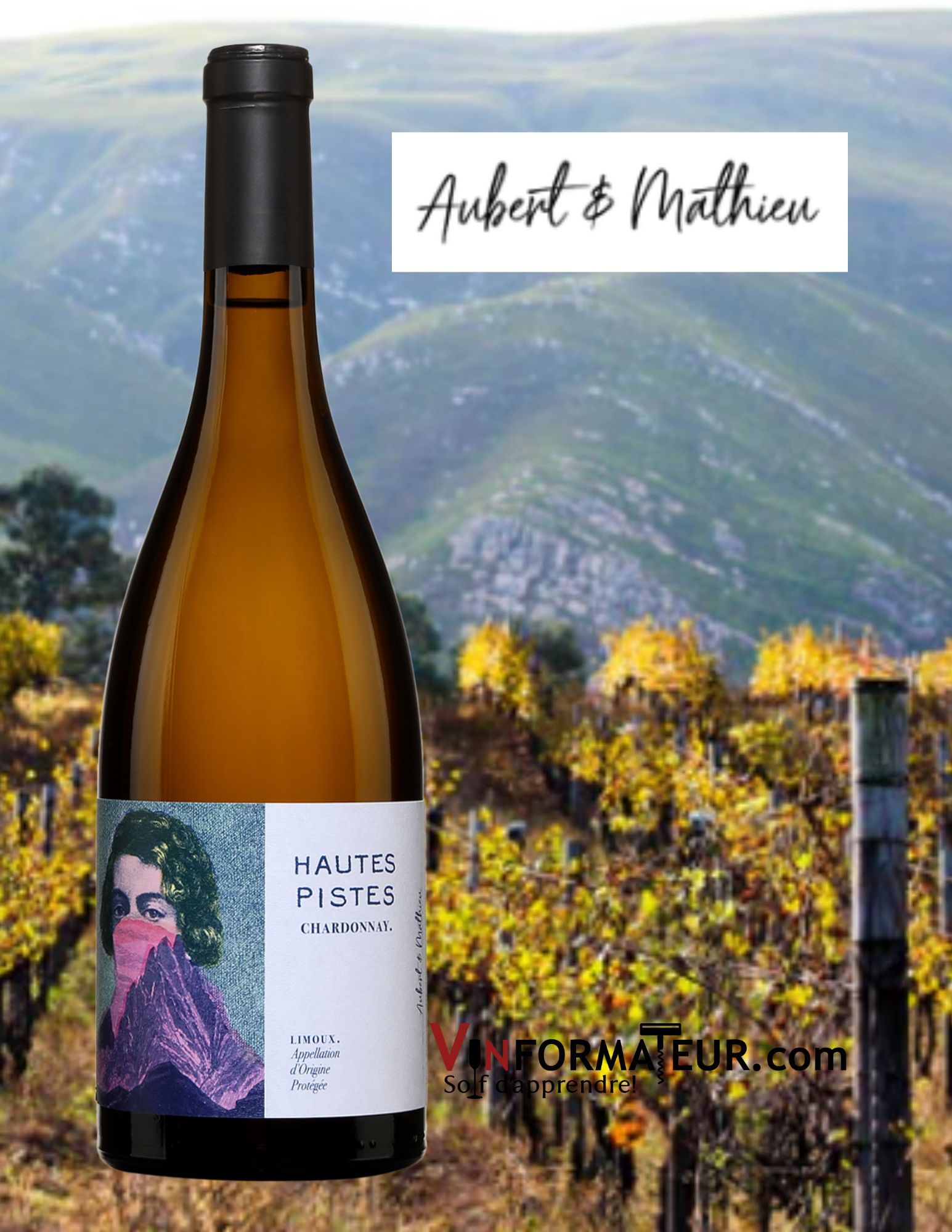 Chardonnay, Aubert & Mathieu, Hautes Pistes, France, Languedoc-Roussillon, Limoux, 2021, 18,90$, sucre : 2.1 g/l, alc. : 13.5%, code SAQ : 15082740.