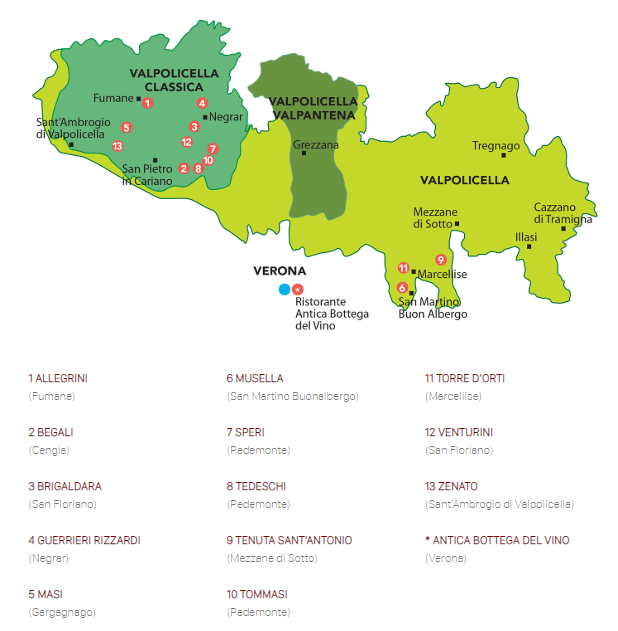 Puis on augmente de qualité avec les vins élaborés avec la méthode Ripasso bien typique de la région de Valpolicella. Cette méthode était historiquement utilisée pour ajouter de la structure aux vins de Valpolicella qui en avaient besoin. Il faut savoir que durant les années 50 et 60 les vins de Valpolicella étaient produits en très grande quantité et devaient être bus bien jeunes. Afin donc de leur permettre de tenir la route plus longtemps on a introduit cette méthode de vinification.