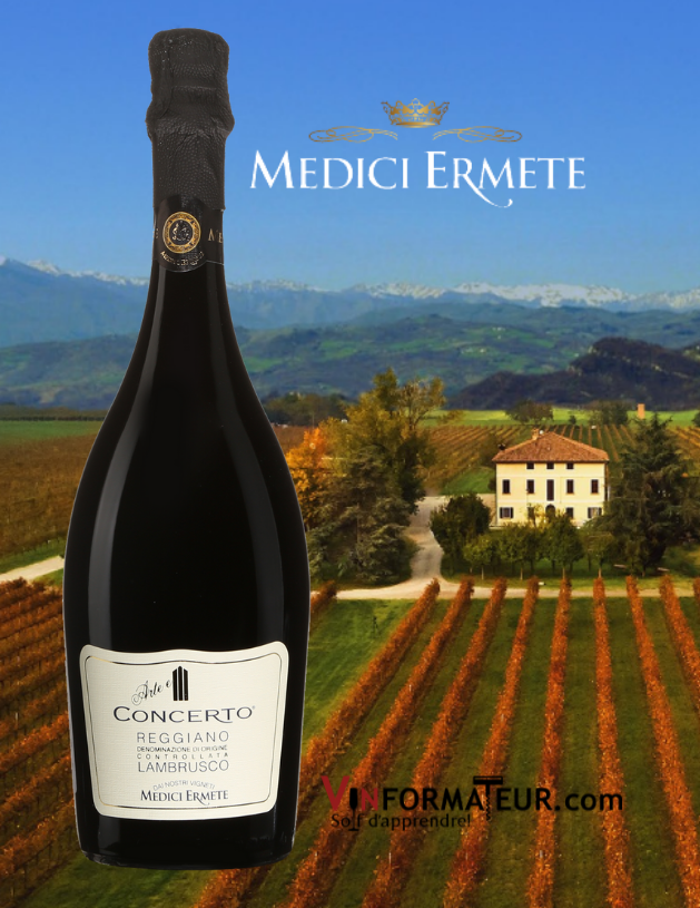 Concerto Reggiano, Lambrusco, Italie, Emilie-Romagne, 2019, $19.55, cépage : Lambrusco 100%, sucre : 11.0 g/l, alc. 11.5%, code SAQ : 733261.