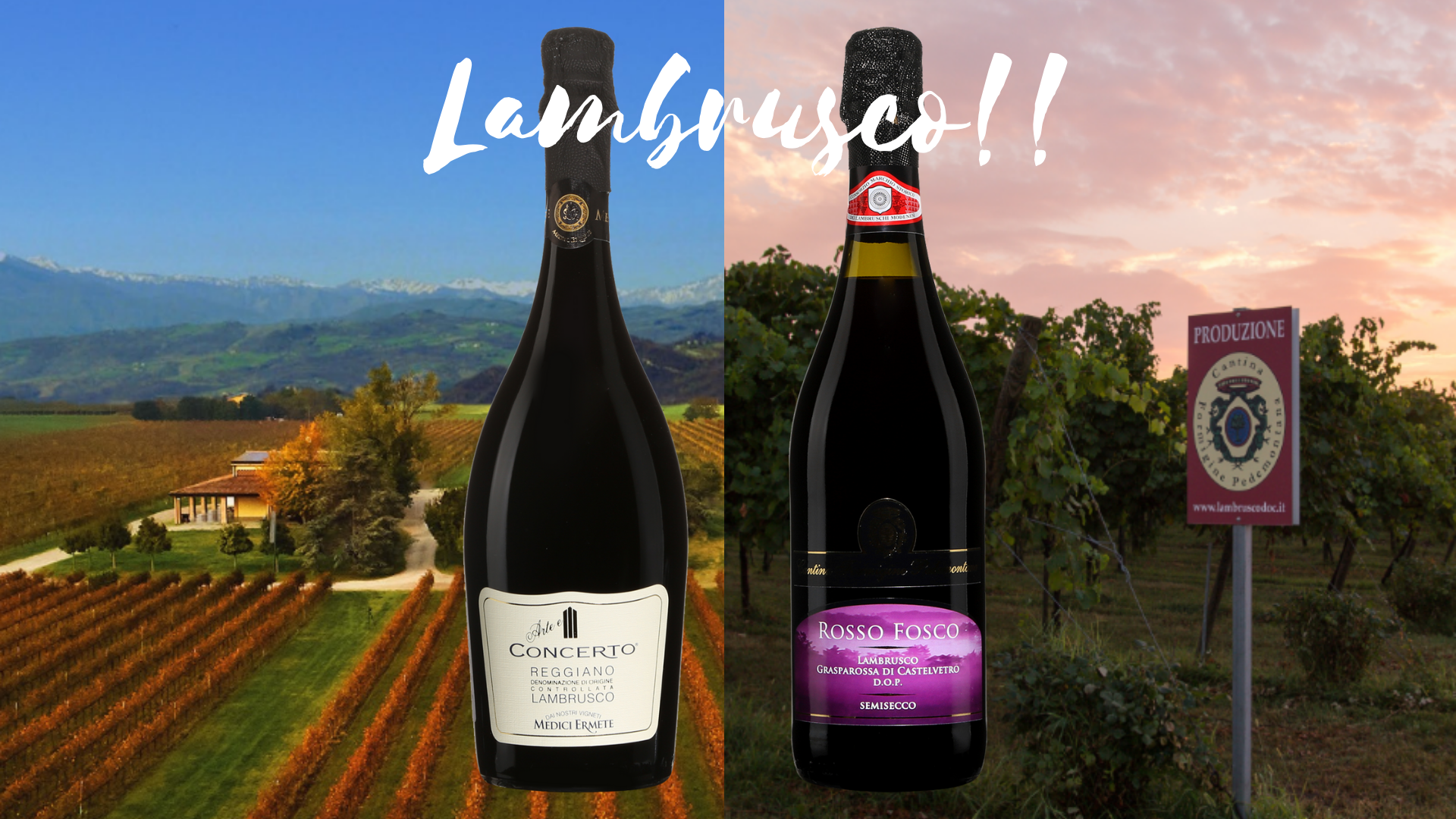 Alors le Lambrusco, qu’est-ce que c’est? C’est un vin rouge ou rosé effervescent des plus originaux qui provient d’Émilie-Romagne (Lambrusco DOC) élaboré à partir du cépage lambrusco. Pour vous faire une idée, imaginez-vous un beaujolais effervescent plein de bulles fines, de notes fruits frais, légèrement sucré avec un beau niveau d’acidité et des tannins bien ronds, bien souples. Quand même assez original non?