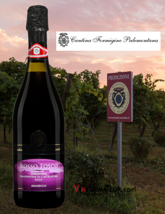 Rosso Fosco, Lambrusco Grasparossa di Castelvetro DOP, Semisecco, Italie, Emilie Romagne, 14,30$, sucre: 18 g/l, alc.: 10%, code SAQ : 14293625.