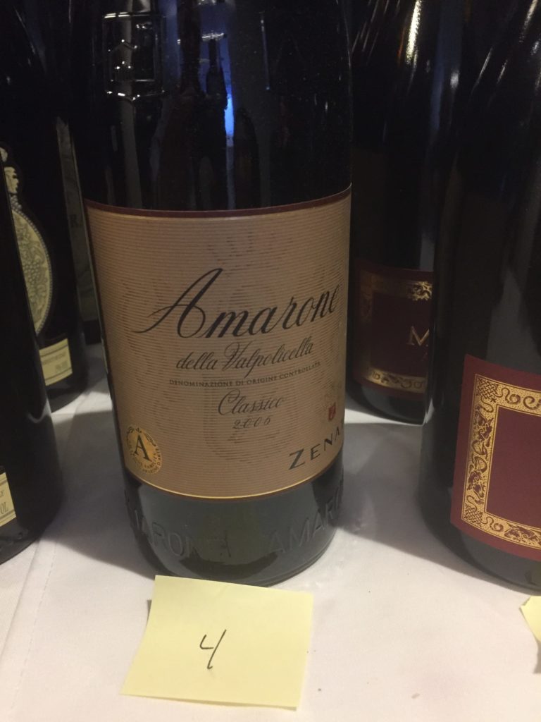 Zenato, Amarone della Valpolicella 2006 (très belle année soit dit en passant). Ce vin présentait des notes d’épices, de cerise au marasquin, de vanille ainsi que des notes de prunes. Très aromatique. Puis en bouche, un beau moelleux d’un beau velouté, une belle acidité qui lui conférait de la fraîcheur et des tannins bien charpentés, tissés serrés. De belles notes de cerise, une belle chaleur et amplitude en bouche et une longueur qui n’en finissait plus. Coup de cœur avec ce vin!