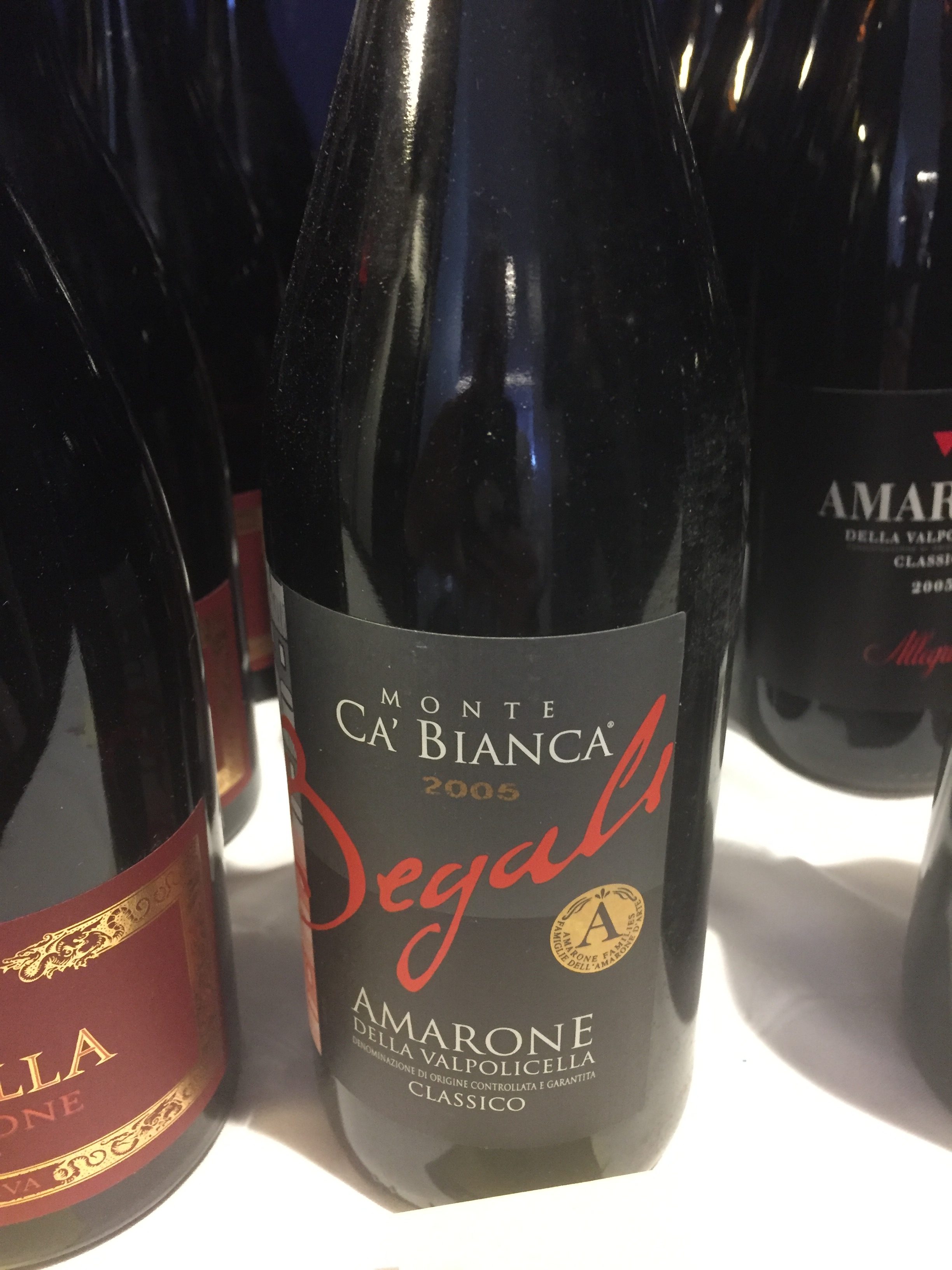 Azienda Agricola Begali Lorenzo, Monte Ca’Bianca, Amarone della Valpolicella Classico, 2005. Très beau ce vin avec ses notes de cerise, de raisins secs, beaucoup de fraîcheur, tout en équilibre autant au niveau du moelleux que de l’acidité. Les tannins sont bien présents sans être asséchants. Belle longueur et richesse en bouche.