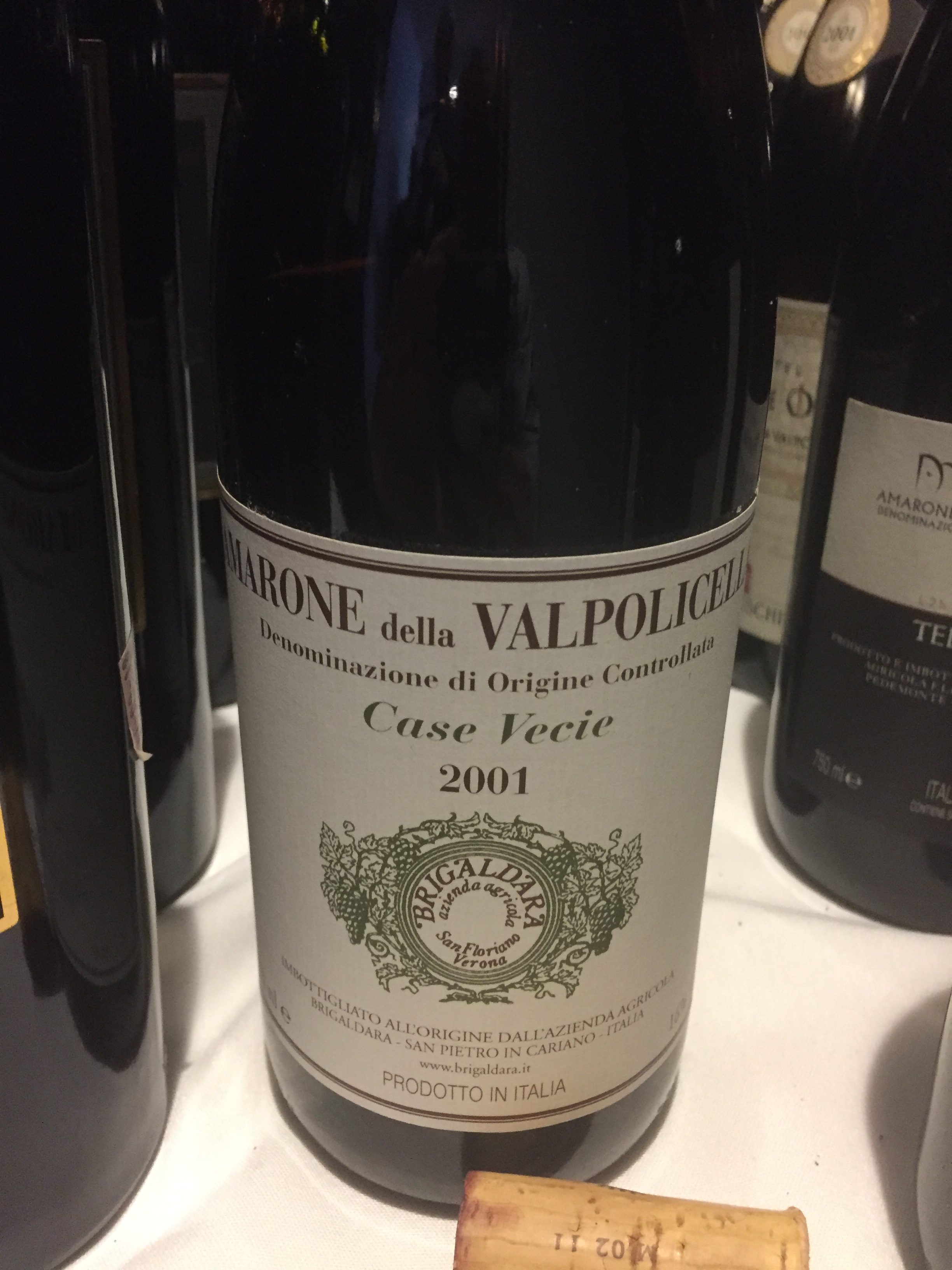 Brigaldara, Casa Vecie, Amarone della Valpolicella, 2001. Le nez est sur la confiture de fruits rouges, d’épices douces, de cerises et de raisins secs. Le moelleux est de texture veloutée, belle acidité et les tannins sont bien charpentés pour un 2001, surprenant! De belles notes de cerises, de tabac et beaucoup de longueur. Très beau.