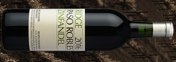 Ridge, Paso Robles, 2016, $61.25, cépage : Zinfandel, 100%, alc. 14.6%, disponible en importation privée, caisse de 6 bouteilles.