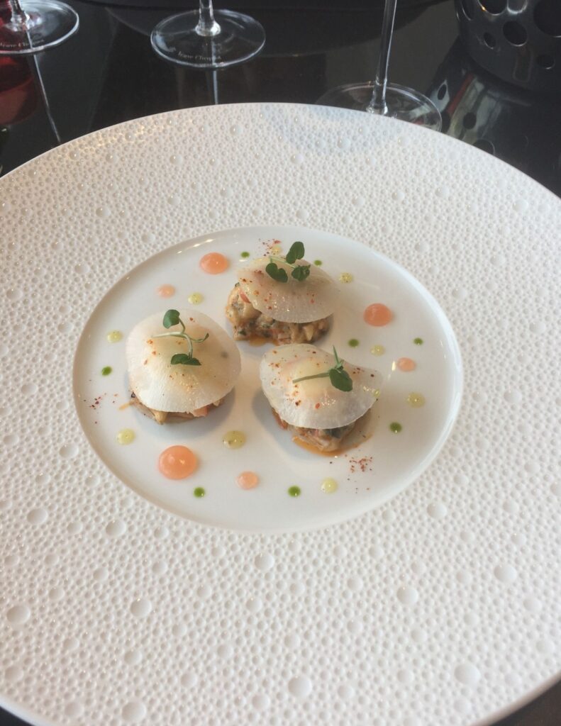 Le Homard : en fines lamelles de daikon à la vanille et pamplemousse accompagné du Veuve Clicquot ‘’La Grande Dame’’ 1998 !!!