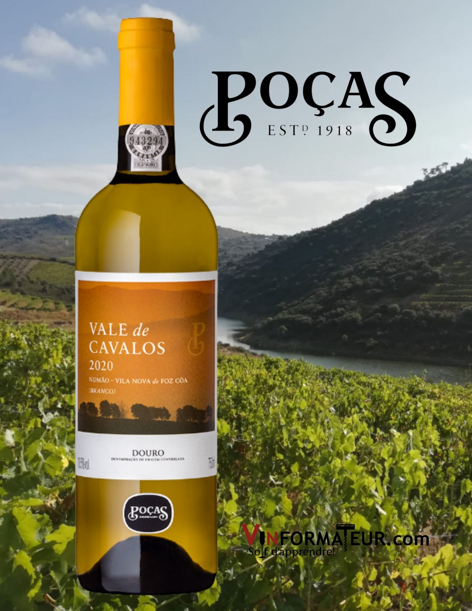 Vale de Cavalos, Manoel D. Poças Junior, Portugal, Douro, vin blanc, 2020, 17,05$, cépages : 25% Codega, 25% Rabigato, 25% Gouveio, 25% Viosinho, Taux d’alcool : 13,00%, Sucre: 1,4 g\L, Code SAQ : 14064072