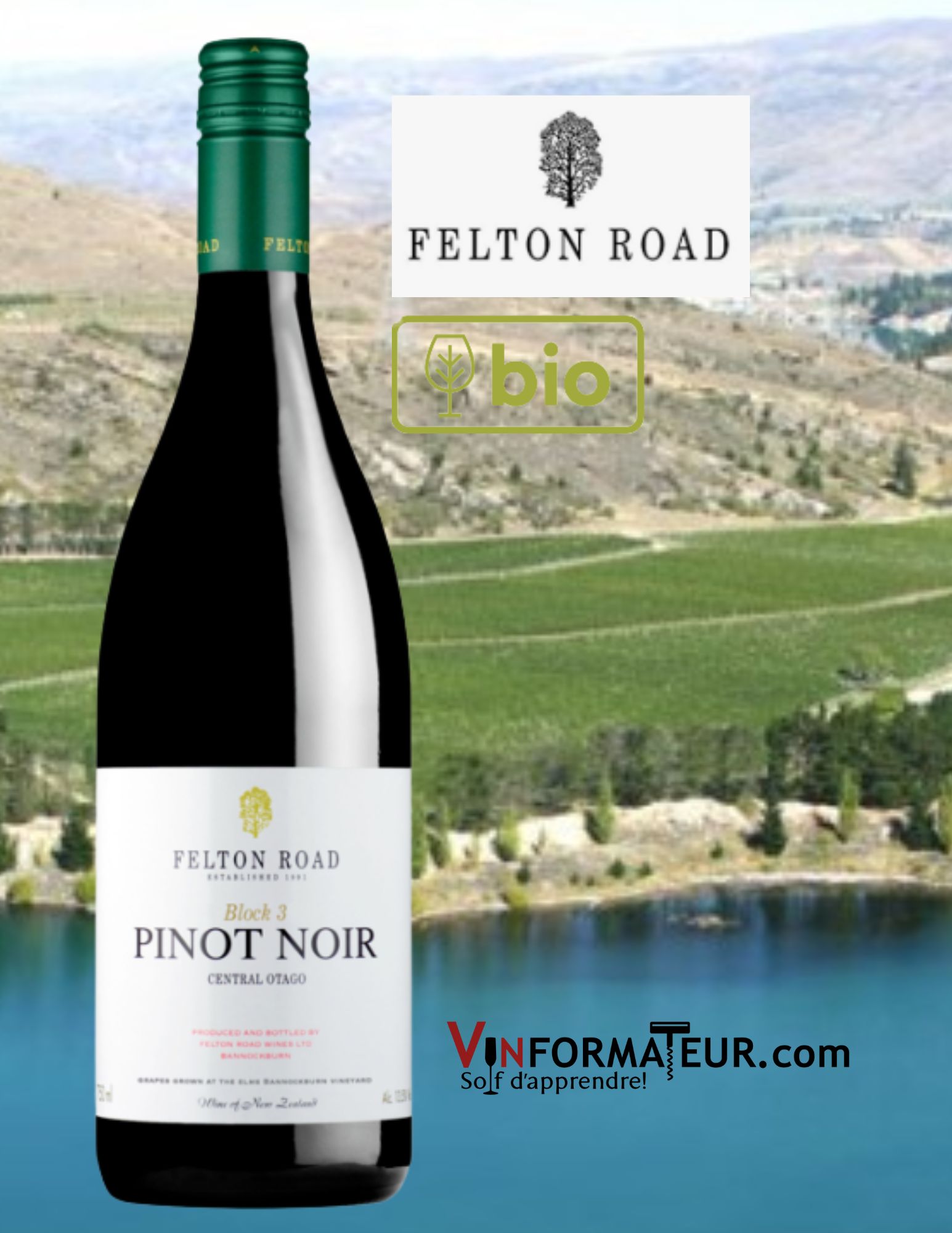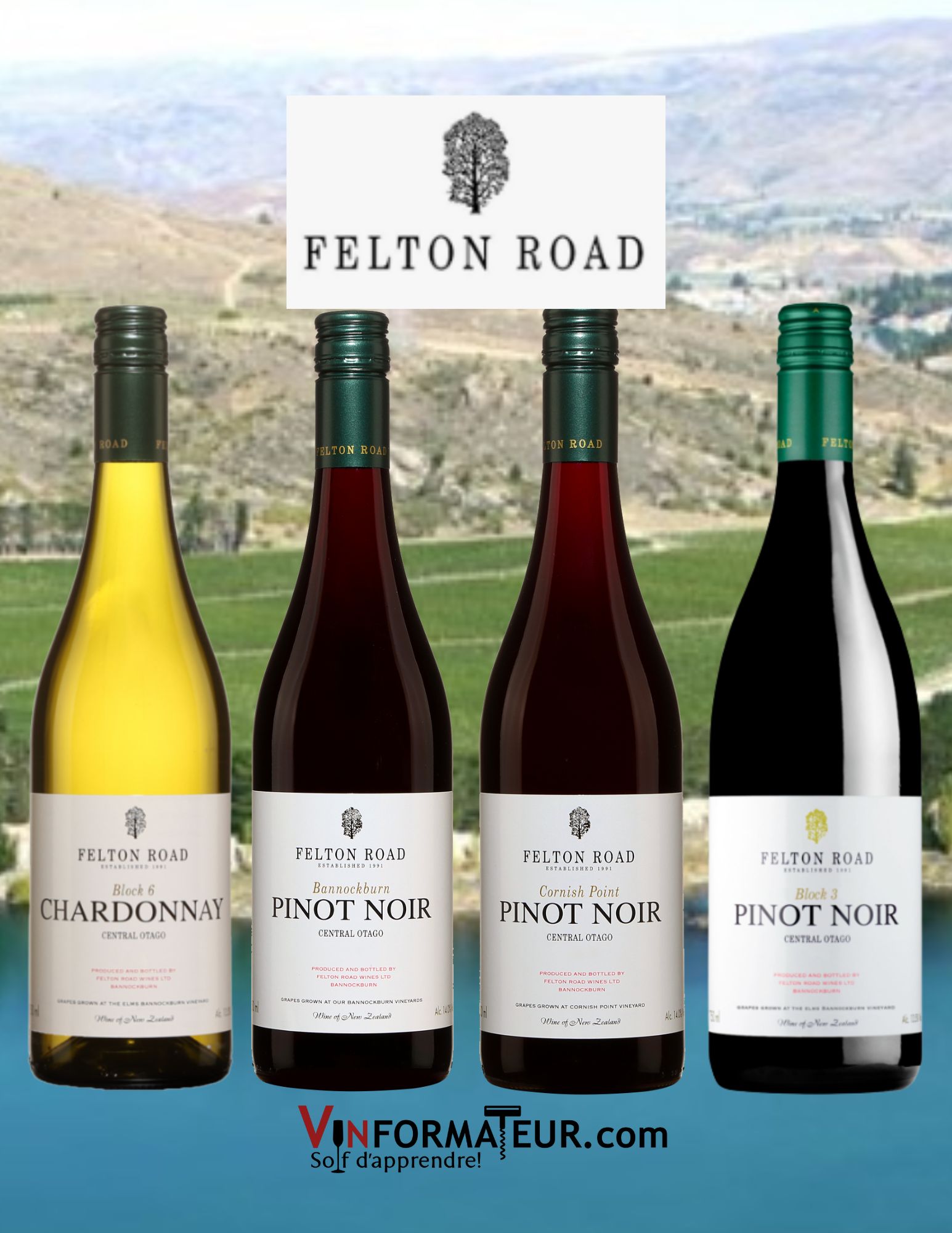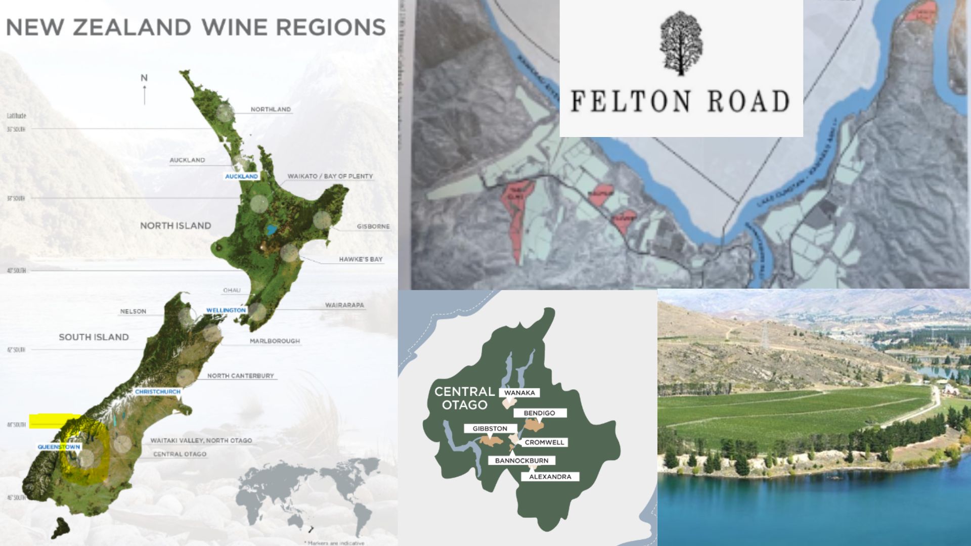 Le vignoble Felton Road, Bannockburn, Central Otago en Nouvelle-Zélande a vu le jour en 1991 suite à une évaluation en profondeur du terroir avec un objectif clair de produire des vins haut de gamme. Non seulement le climat était idéal en termes de chaleur avec ses importantes variations de températures diurnes et nocturnes propices au développement de l’acidité mais aussi ainsi les pentes exposées au nord à la fin de Felton Road, Bannockburn (reconnue comme sous-région des plus qualitative) présentaient un des plus sites des plus optimal. Le premier vin a été produit en 1997.