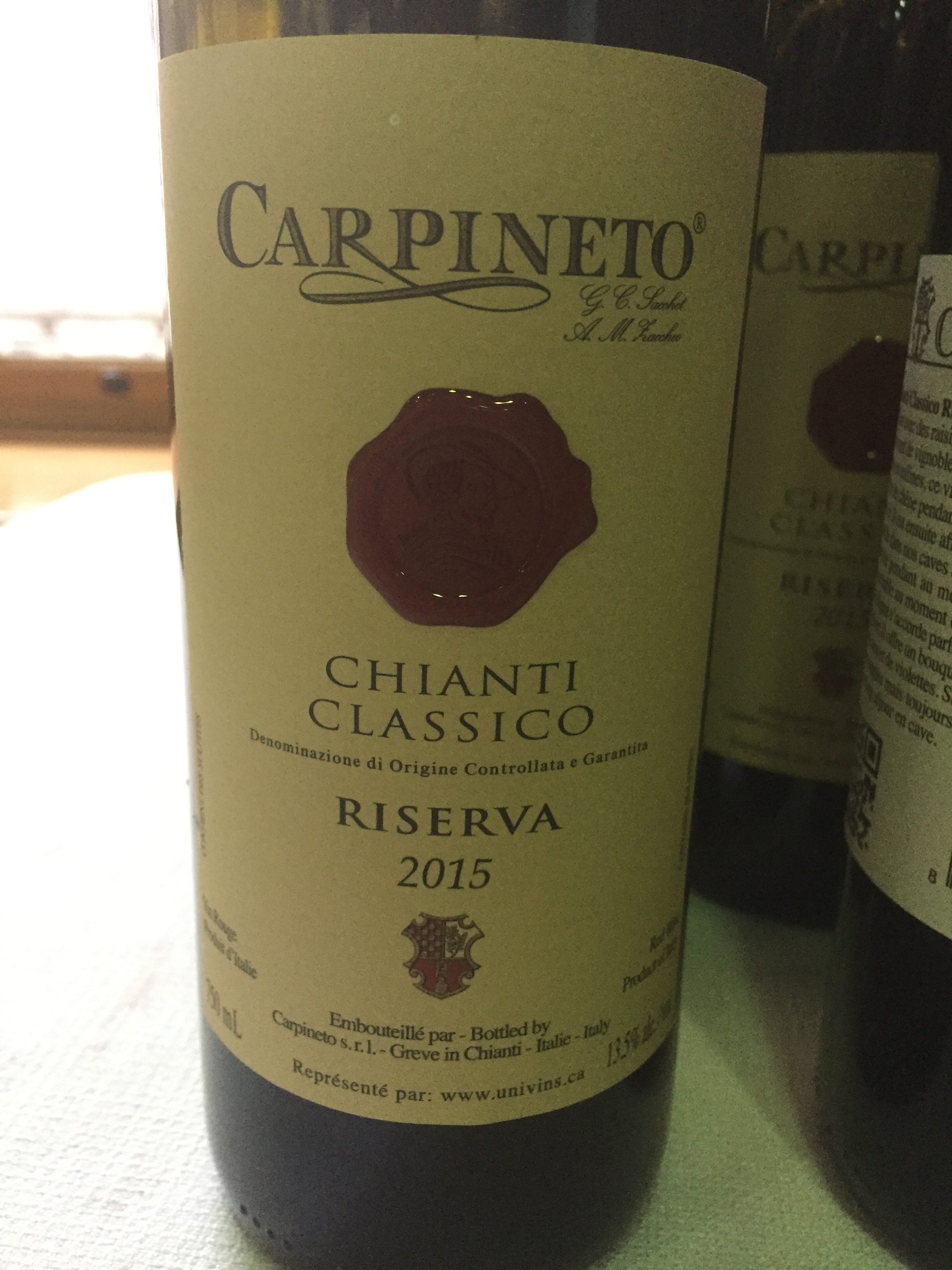 Carpineto Chianti Classico Riserva 2015, $27.00, code SAQ: 10300023. Noté Wine Spectator 92 pts. Le 2013 est présentement disponible sur le site de la SAQ. https://univins.ca/