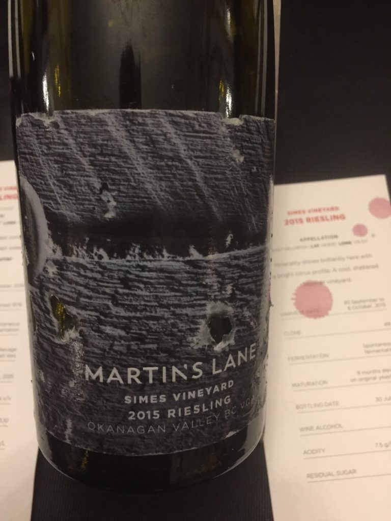 Simes Vineyard, Riesling, 2015, $55.00. Ce vin avait un niveau d’acidité un peu plus élevé que les deux autres.