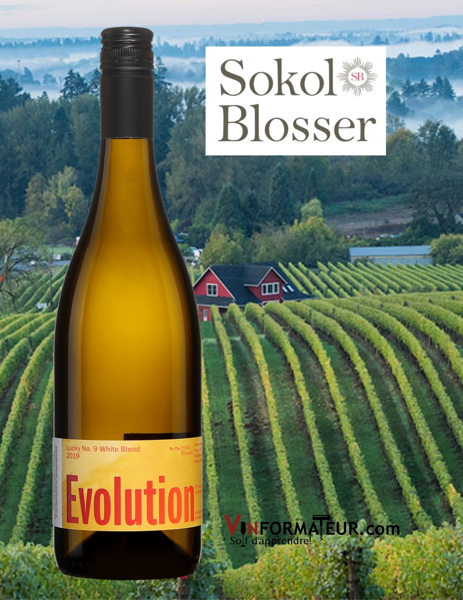 Evolution, Lucky no 9, États-Unis, Oregon, Willamette Valley, vin blanc bio, 2019, 20,15$, cépages : Müller-Thurgau 25 %, Muscat 25 %, Pinot gris 25 %, Riesling 25 %, sucre: 12 g/l, alc.: 12%, code SAQ : 10744708.