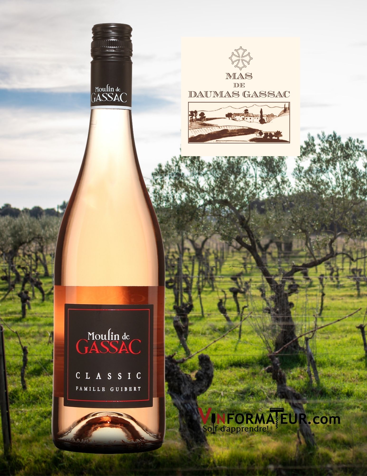 Moulin de Gassac, Classic, vin rosé, France, Languedoc-Roussillon, Pays d’Hérault, Famille Guibert, 2020, 14,85$, cépages : Carignan 40 %, Cinsault 30 %, Grenache 30 %, sucre : moins de 1.2 g/l, alc. : 12.5%, code SAQ : 14396608.