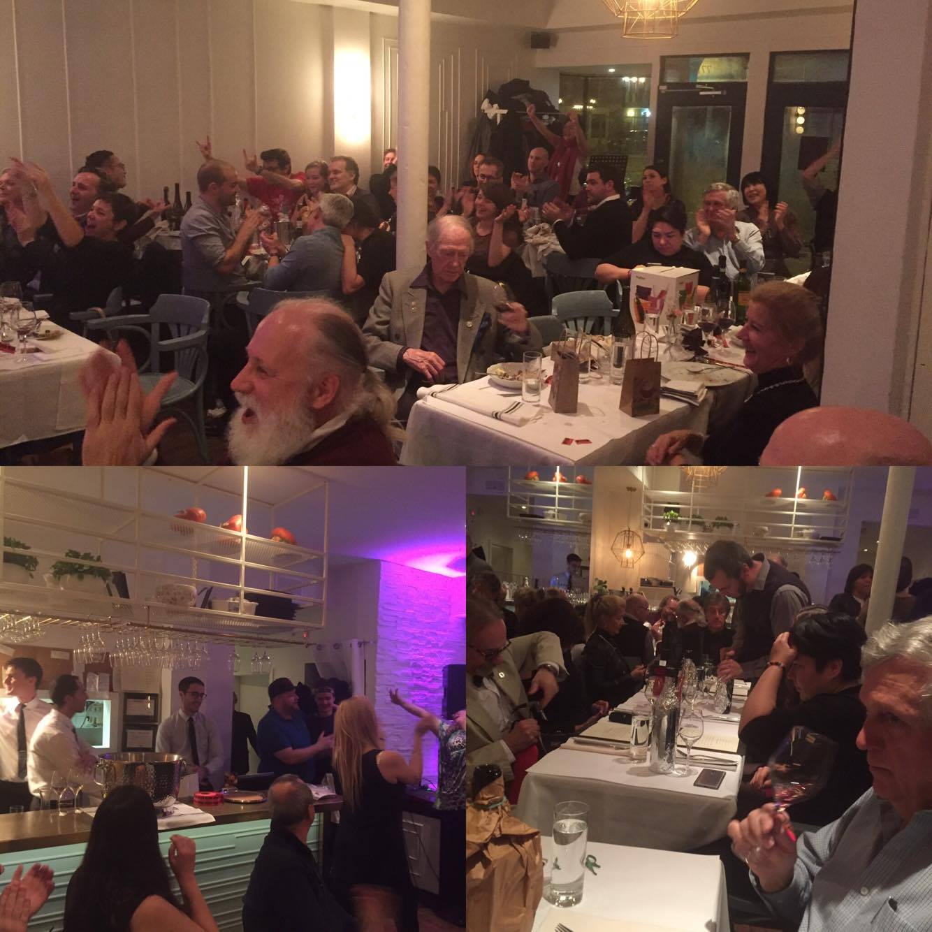 Hier soir c’était notre party de Noel de l’ACSP (Association canadienne des sommeliers professionnels) au restaurant Prince (Apportez votre vin). Les sommelières apportaient des vins du vieux continent (France, Italie, Espagne etc.) et les sommeliers des vins du Nouveau Monde (États-Unis, Argentine, Afrique du Sud, Australie etc.). Tous les vins étaient dégustés à l’aveugle (ou à l’anonyme). Donc aucune idée de ce qu’est le vin qu’on goûte.