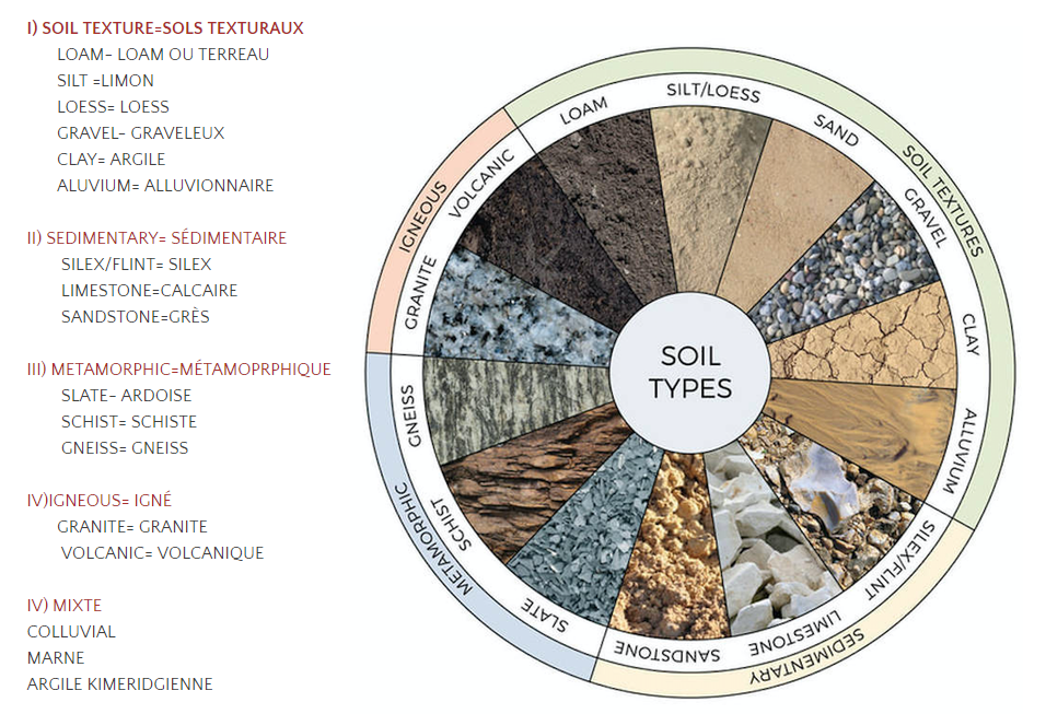 Saviez-vous que le type de sol dans lequel pousse un cépage peut avoir un impact assez important sur le profil aromatique d’un vin. Les implications sont nombreuses pour un viticulteur. Tout dépendant des types de sols qui composent son vignoble il saura optimiser ses divers terroirs en plantant les cépages appropriés aux bons endroits et ainsi aller chercher le meilleur que ses vignes ont a lui donner.