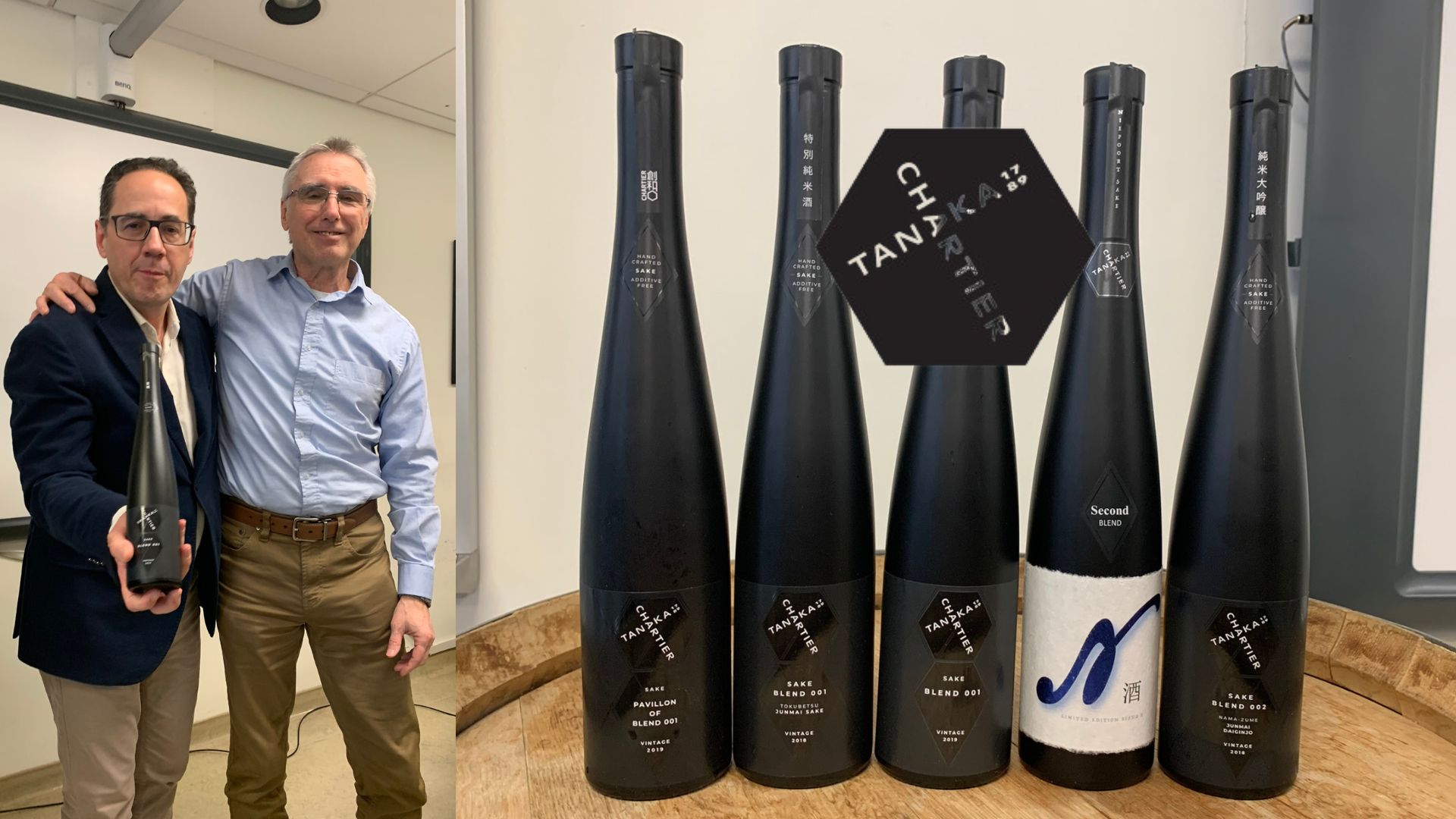 Sakés Tanaka 1789 Chartier: Blend 001 Tokubetsu Junmai Vintage 2018, Blend 001 Vintage 2019, Pavillon of Blend Vintage 2019, Blend 002 Nama-Zumé Daiginjo Vintage 2018, Second Blend N limited edition.