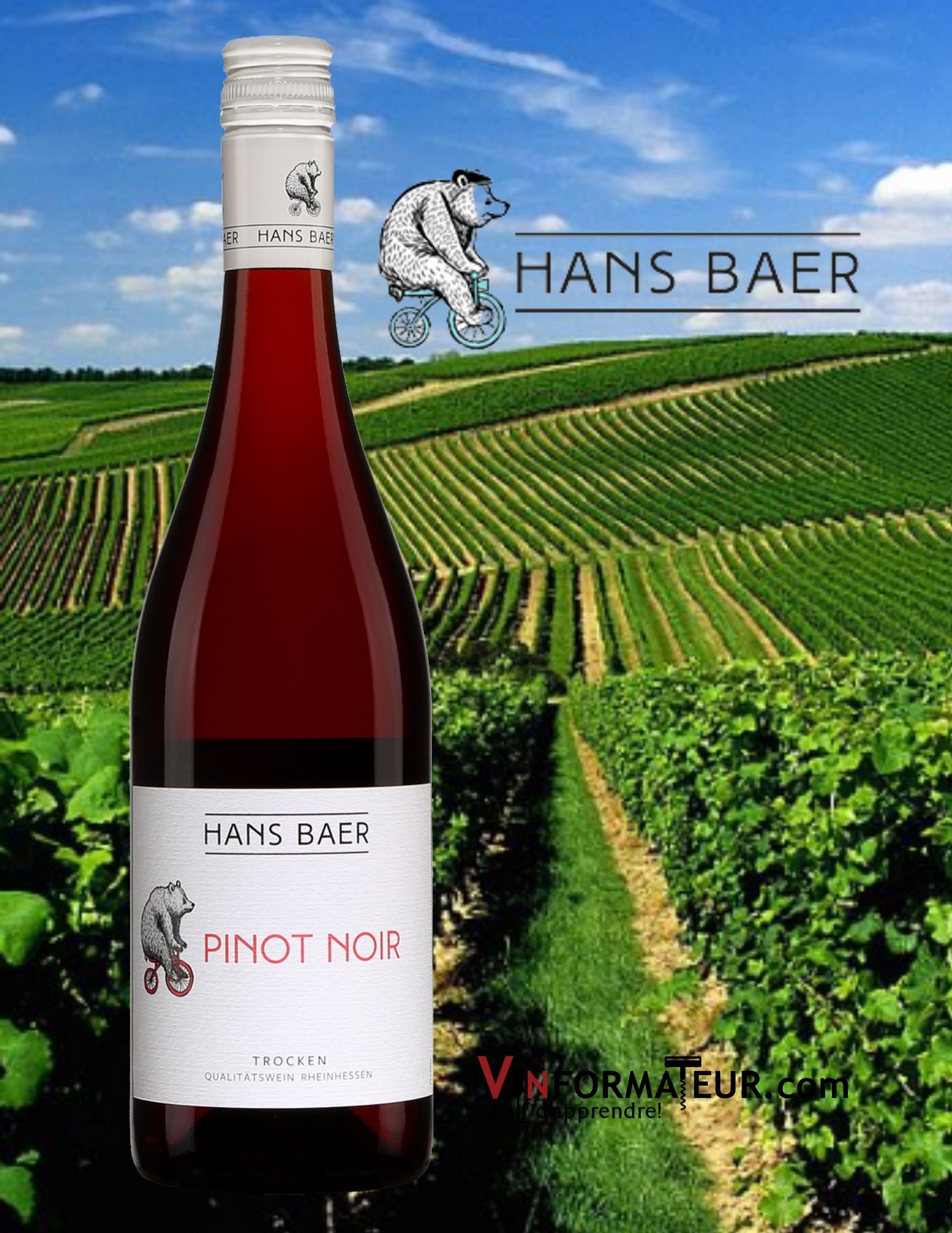 Pinot Noir, Hans Baer, Allemagne, Rheinhessen, Trocken, 2020, 14,40$, sucre : 7.7 g/l, alc. : 13%, code SAQ : 14035394.
