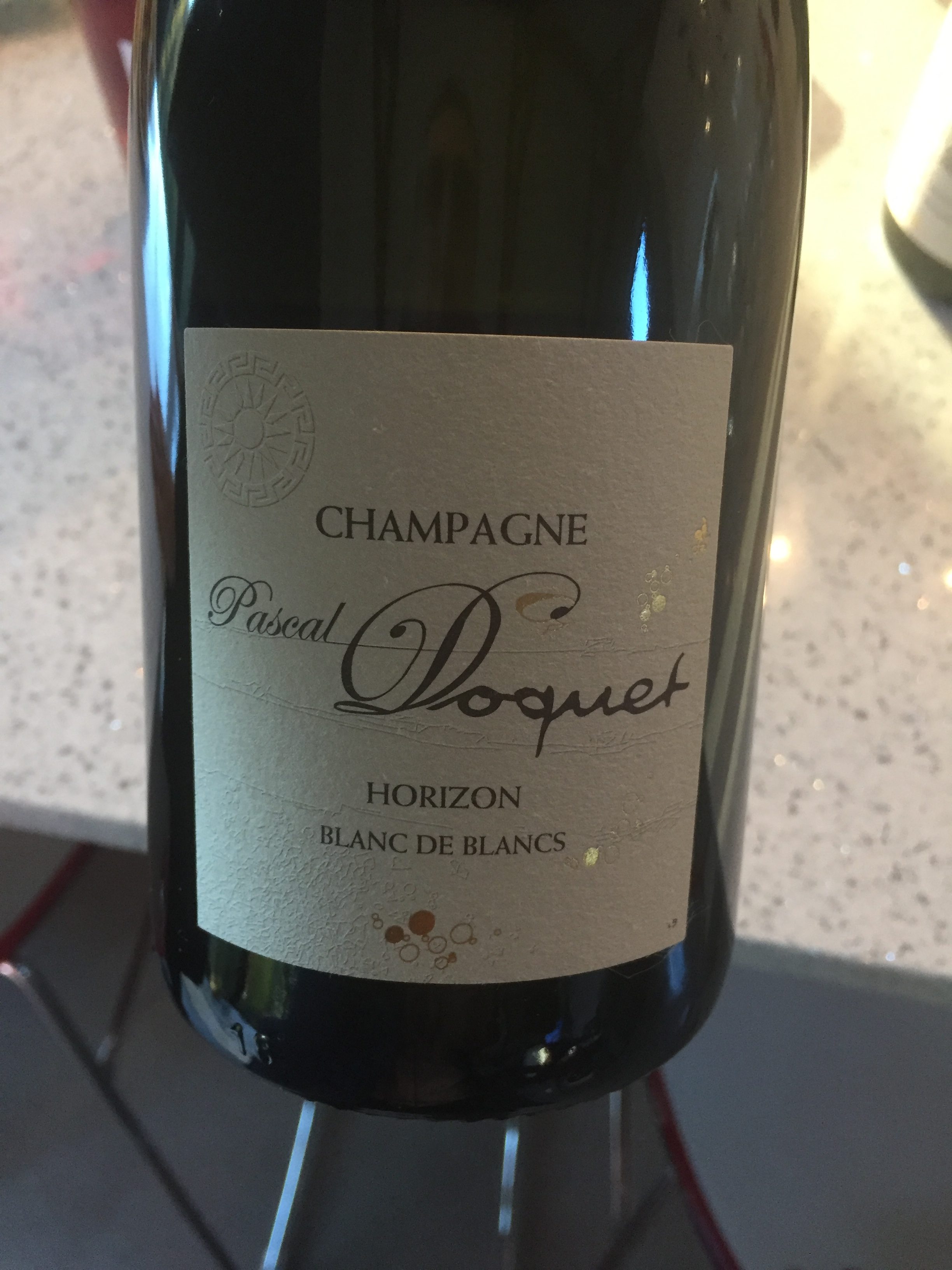 J’avais choisi celui le Champagne Pascal Doquet, Horizon, Blanc de blancs, Brut, non millésimé, $55.50, code SAQ : 11528046. Noté 17/20 par Mr. Bulles (Guénael Revel). De l’agence Oenopole. https://oenopole.ca/