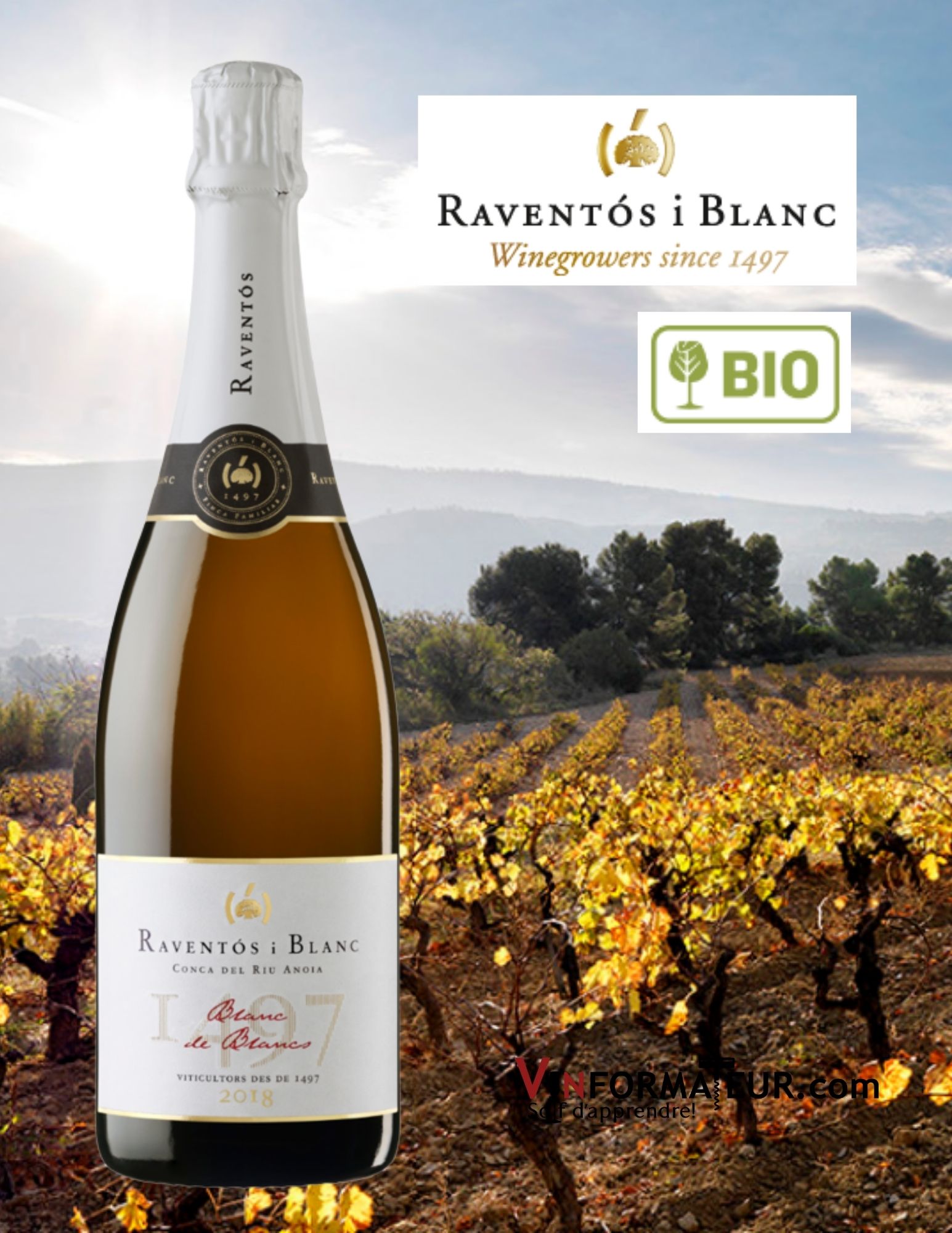 Raventos I Blanc, Blanc de Blancs, Extra Brut, Conca del Riu Anoia, Espagne, vin mousseux Bio, 2018, 24,70$, cépages : Maccabeu 60%, Parellada 20%, Xarel-lo 20%, sucre : 3.5 g/l, alc. : 12%, code SAQ : 12097946.