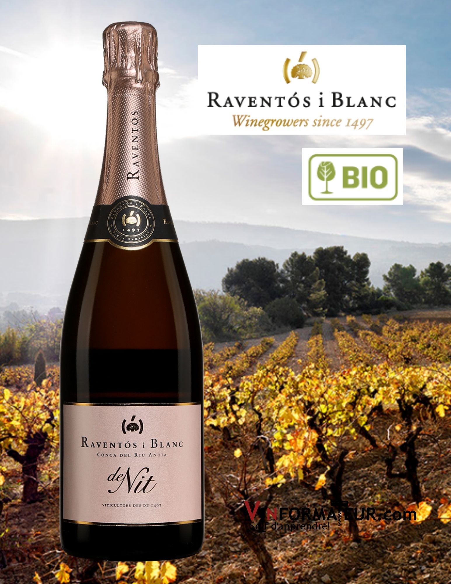 Raventos I Blanc, De Nit, Conca del Riu Anoia, Extra Brut, Espagne, vin mousseux Bio, 2018, 29,55$, cépages : Maccabeu 50%, Xarel-lo 25%, Parellada 20%, Monastrell 5%, sucre : 4.1 g/l, alc. : 12%, code SAQ : 12097954.
