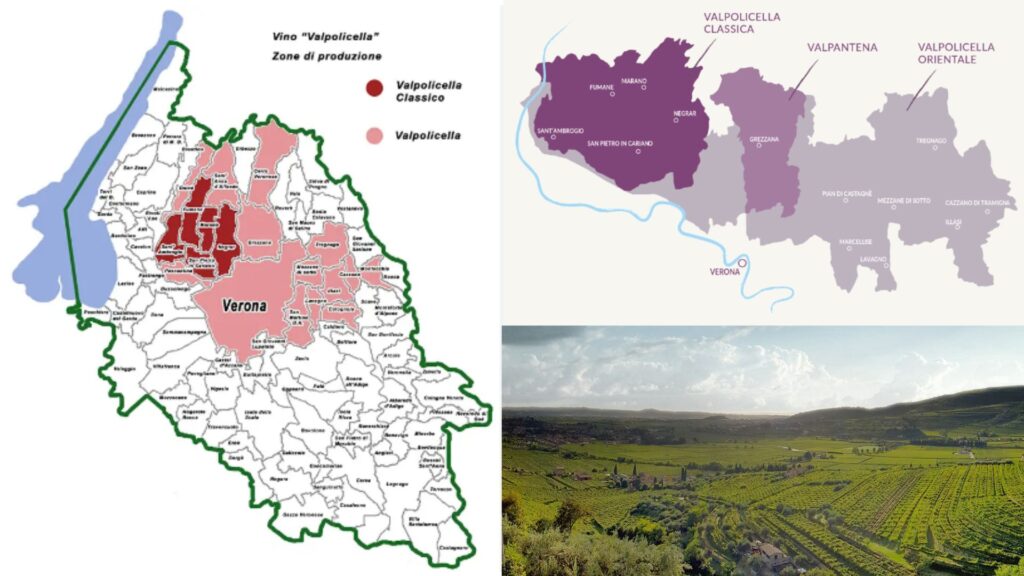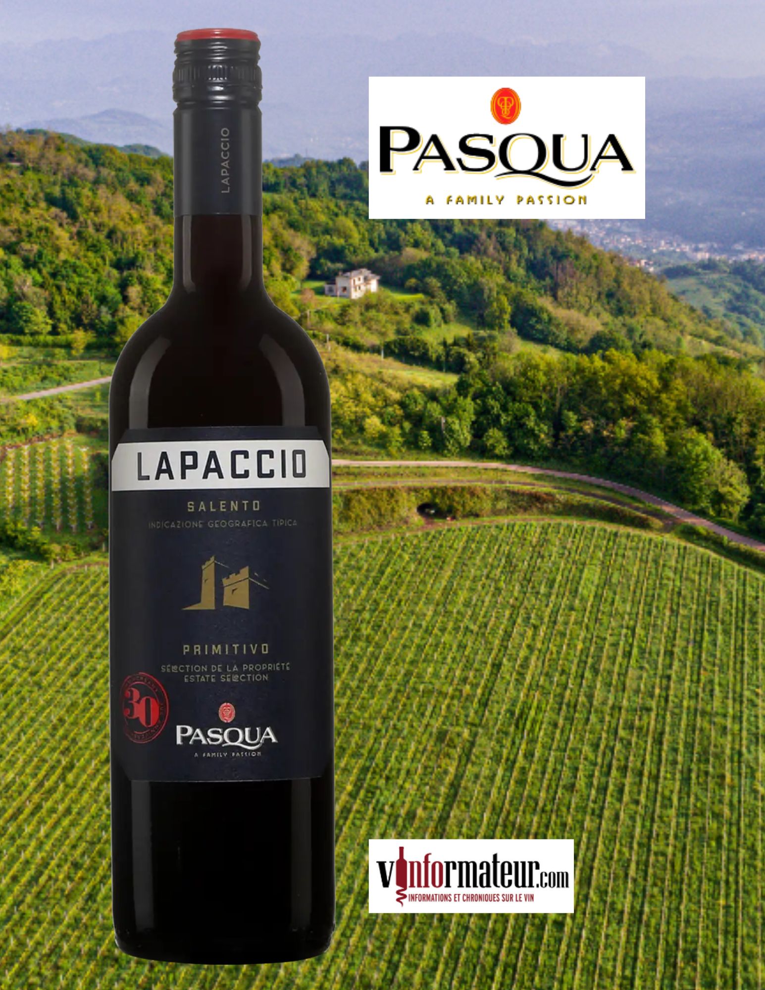Trois vins de Famiglia Pasqua: Lapaccio 2022, Ripasso Superiore 2021 et Amarone 2019.  bouteilles