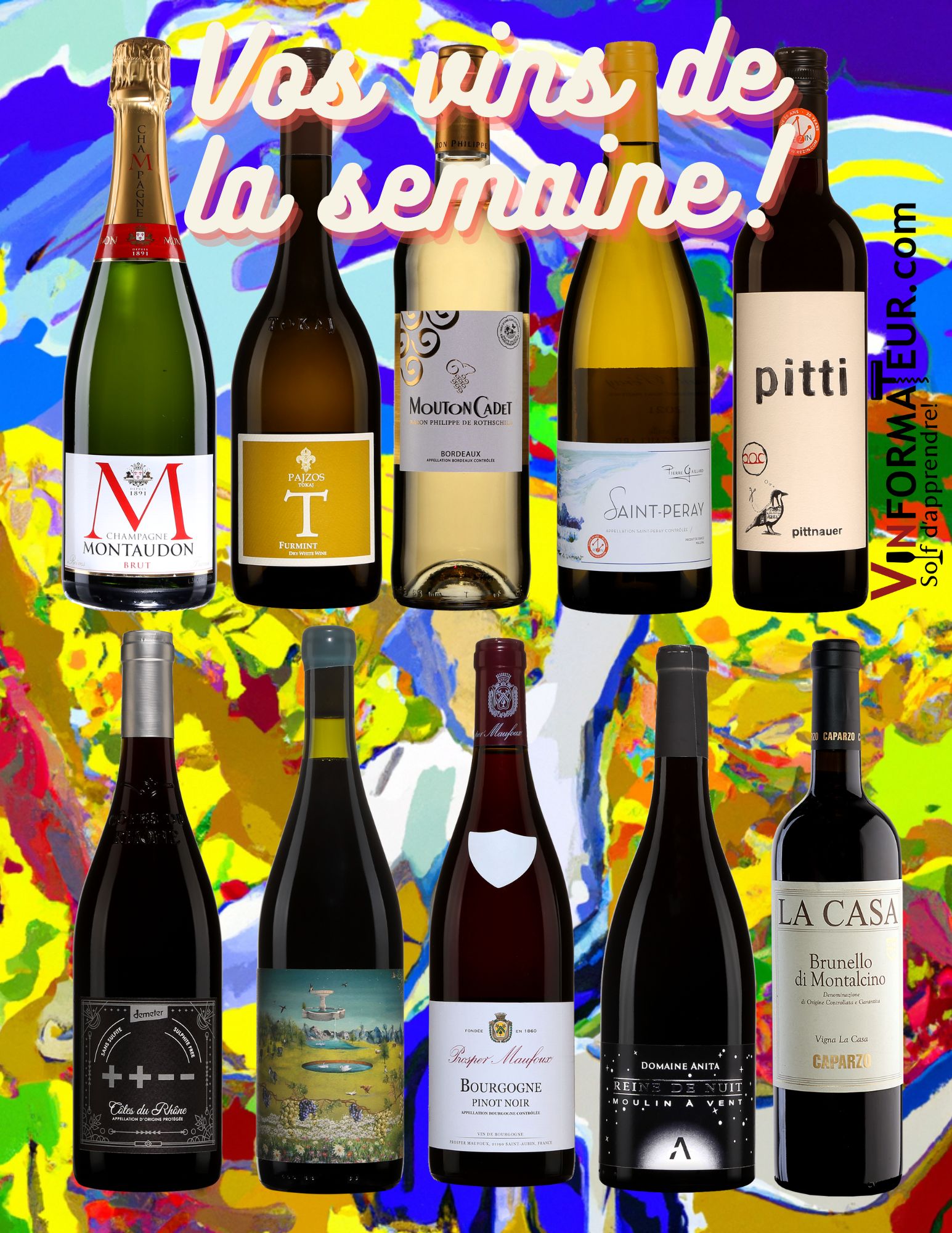 Cette semaine vous trouverez un champagne parmi les moins chers à la SAQ, un blanc fort différent de la Hongrie, un Mouton Cadet blanc de cette maison iconique qui est avec nous à la SAQ depuis plus de 65 ans, un Saint-Péray de Pierre Gaillard beau coup de cœur, le Pitti un rouge d’Autriche à ne pas manquer, un beau rouge en biodynamie des Côtes-du-Rhône, un vin d’Argentine bio, un Bourgogne super bien typé, un Moulin-à-Vent Reine de Nuit autre coup de cœur et en finale un grand cru Caparzo Brunello.