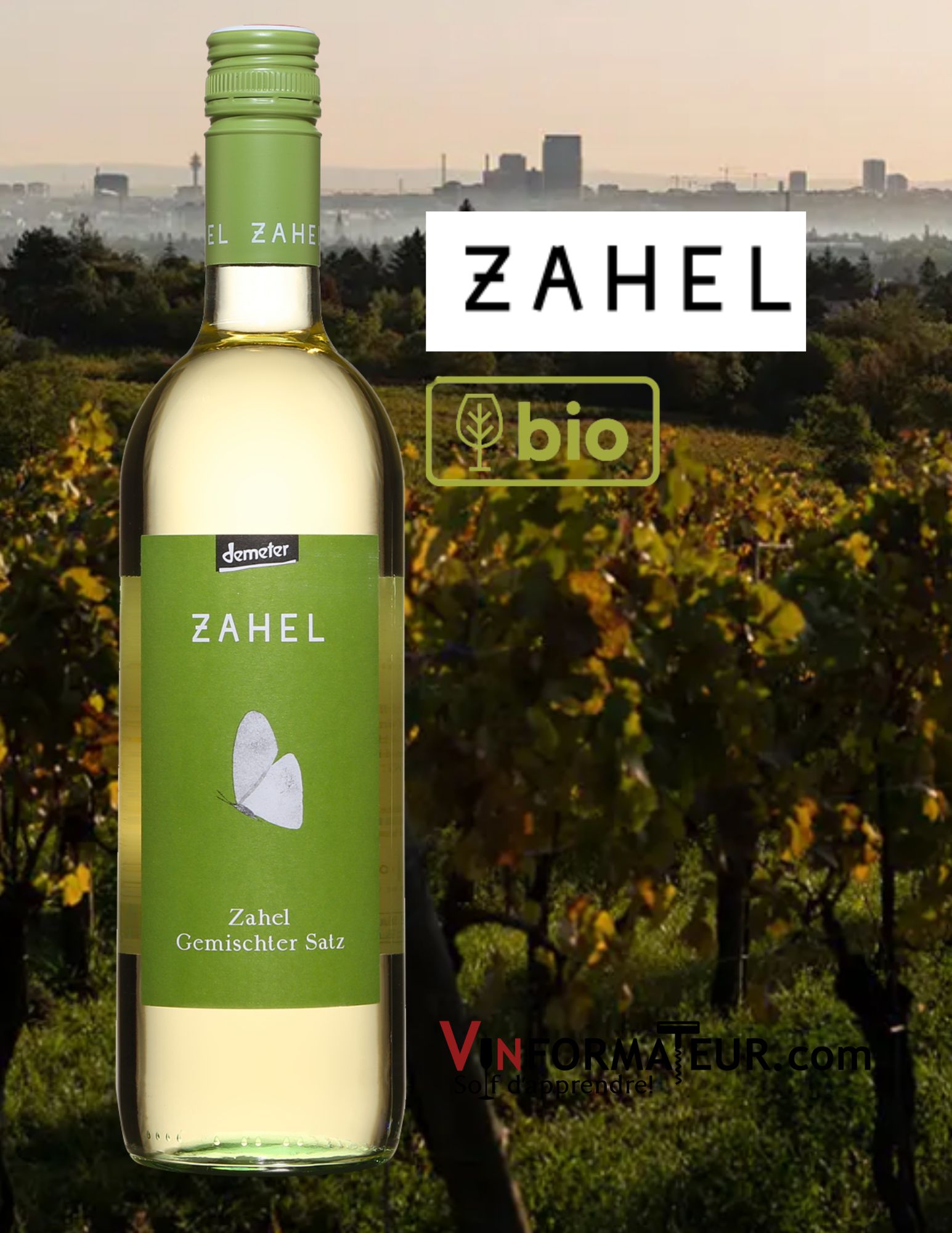 Zahel, Autriche, Gemischter Satz, vin blanc bio, 2022, 20,80$, cépages : Grüner veltliner 34 %, Chardonnay 33 %, Riesling 33 %, sucre : 3.5 g/l, alc. : 12%, code SAQ : 15177685.