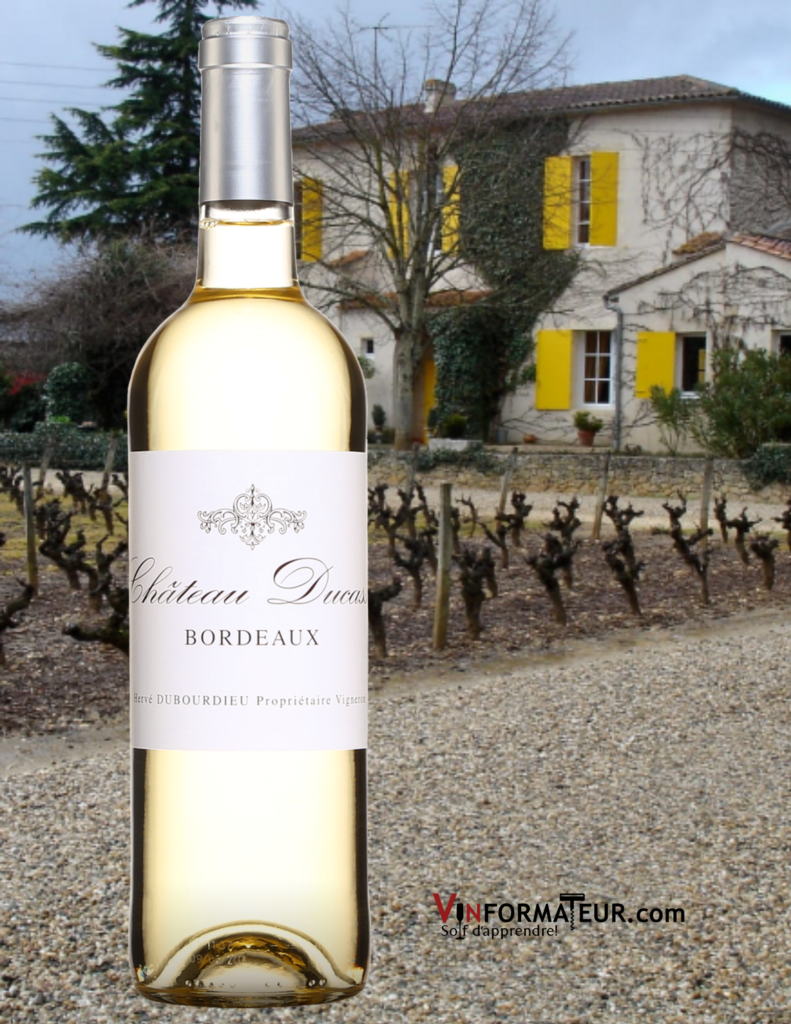 Ce Bordeaux Blanc de Château Ducasse est différent des autres vins de leurs appellations car ‘Hervé associe une forte proportion de Sémillon (60%) et une touche de Muscadelle (5%) avec du Sauvignon Blanc (35%), créant un riche, milieu de bouche plein et aromatique pour compléter la finale nette’’. Source : https://www.kermitlynch.com/our-wines/chateau-ducasse/