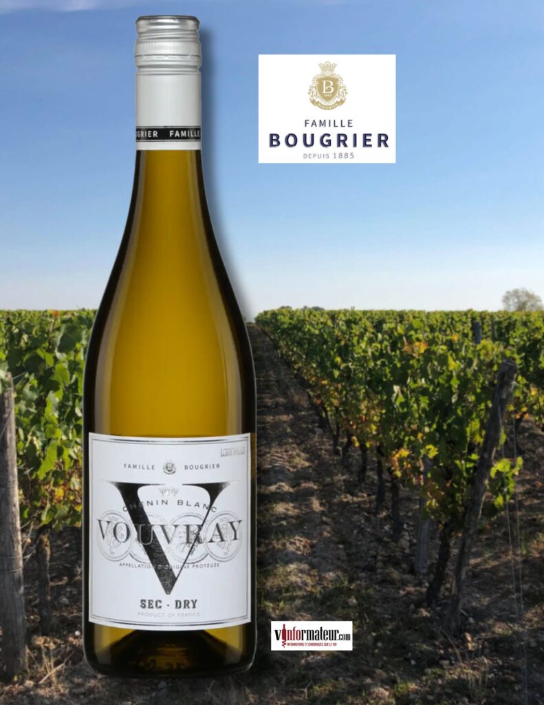 Chenin blanc, Bougrier, France, Vallée de la Loire, Vouvray, vin blanc, 2024, 20,95$, sucre : 2.7 g/l, alc. : 11.5%, code SAQ : 11461970.