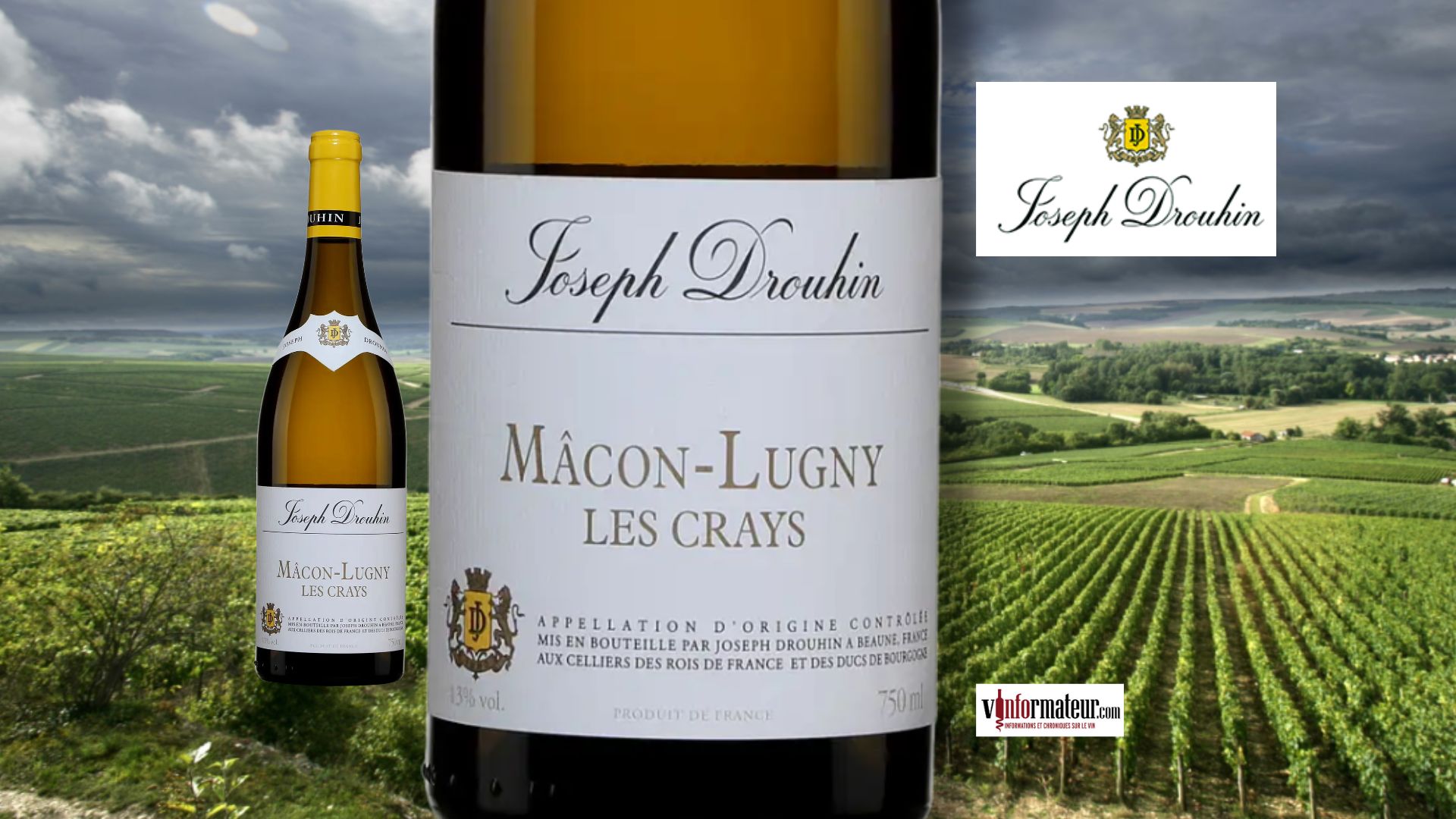 Joseph Drouhin, Mâcon-Lugny, Les Crays, Bourgogne, Mâconnais, vin blanc, 2024, 27,60$, cépage : Chardonnay 100%, sucre : 2.3 g/l, alc. : 13%, code SAQ : 15082344.