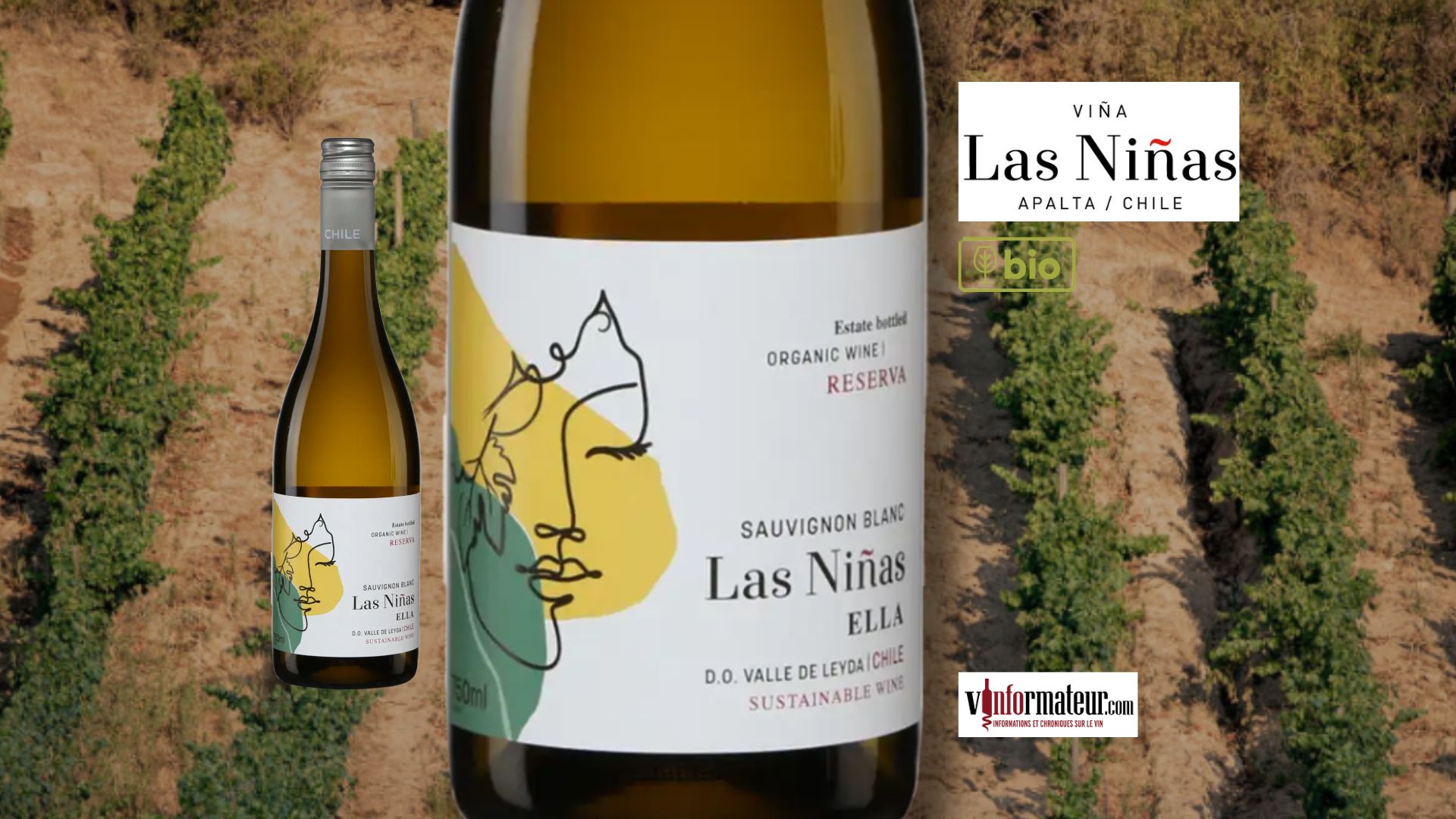Las Niñas, Ella, Sauvignon blanc, Reserva, Chili, D.O. Valle de Leyda, vin blanc bio, 2025, 18,00$, sucre : moins de 1.2 g/l, alc. : 13%, code SAQ : 15448131.