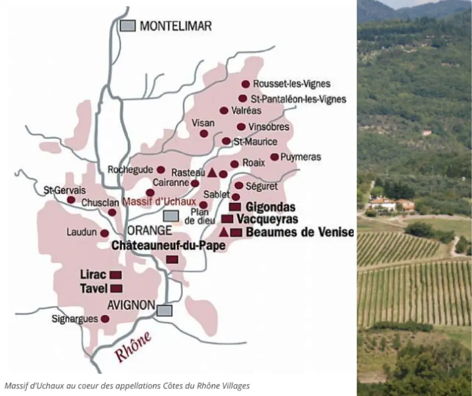Carte viticole Côtes-du-Rhône, Massif d’Uchaux