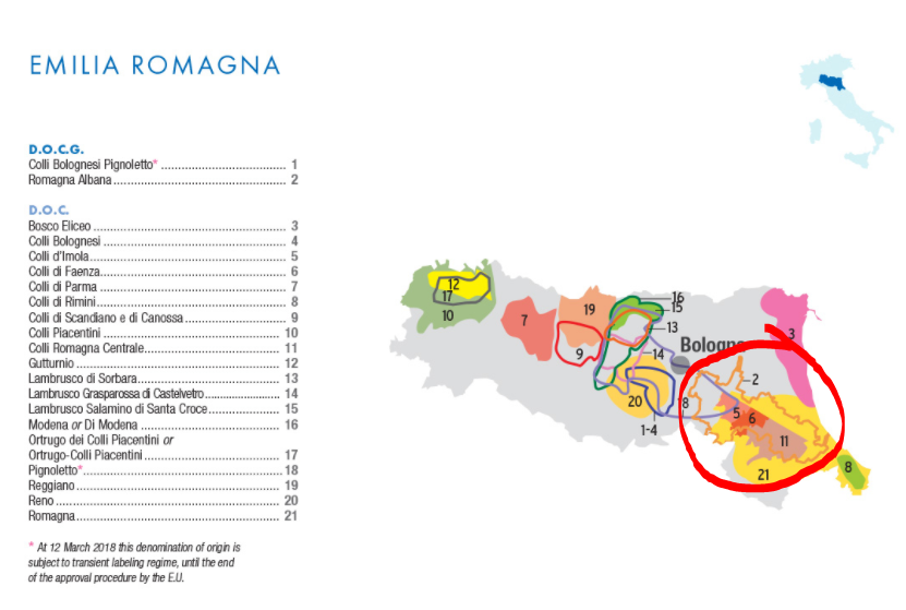 L’appellation Romagna Albana DOCG ne produit que des vins blancs ainsi que des vins de desserts de type Passito et Passito Riserva. Elle est a acquis le statut de DOCG en 1987. On élabore des vins à partir du cépage Albana.