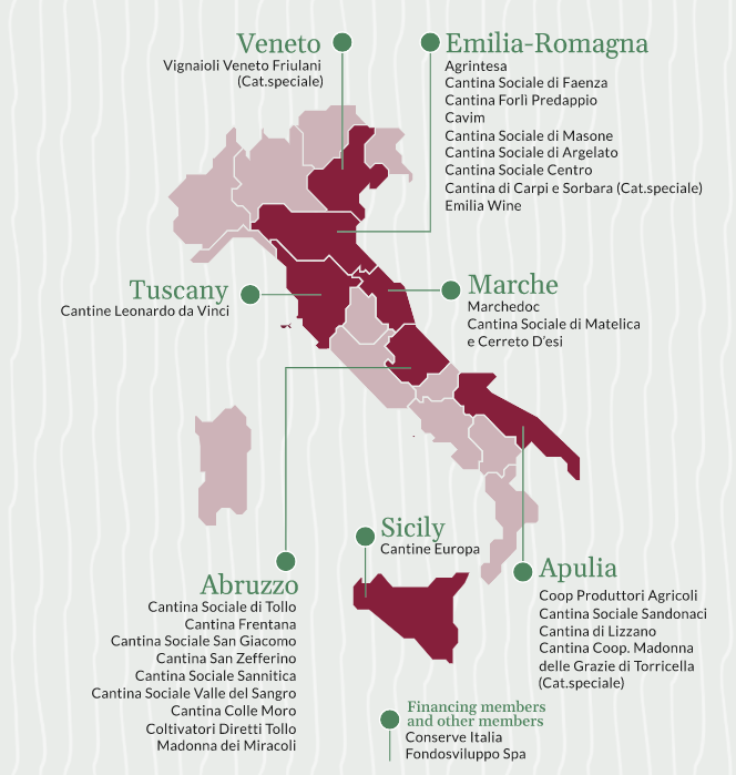 La marque Romio fait partie de la plus importante coopérative vinicole d’Italie Caviro qui a vu le jour en 1966. Cette dernière comprend 29 membres, 12,400 vignobles avec 36,000 hectares de vignes et élabore des vins qui proviennent de 7 différentes régions d’Italie.