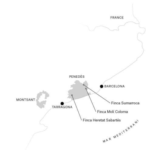 La cave est située dans le domaine rural Molí Coloma en plein cœur de la région du Penedés entre Barcelone et Tarragone, sur les rives de la rivière Anoia. Les vignobles sont répartis sur trois domaines: Molí Coloma, Heretat Sabartés et le domaine de Sumarroca.