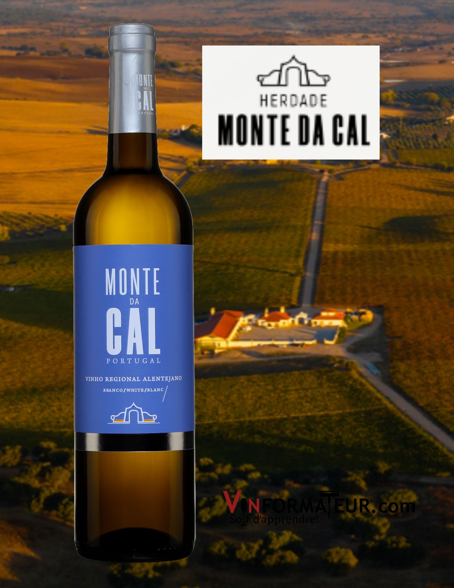 Monte da Cal, Portugal, Alentejano, Vinho Branco, vin blanc, 2020, 15,45$, cépages : Alvarinho 30 %, Viognier 30 %, Antao vaz 20 %, Arinto 20 %, sucre : 2.3 g/l, alc. : 13%, code SAQ : 15038722.