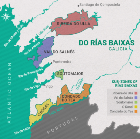 Il faut savoir que plus de 99% de tout le vin produit à Rías Baixas est blanc. Les différences de microclimats, de terroirs et de cépages dans les cinq sous-zones, ainsi que les différentes techniques de vinification, créent une large palette aromatique. Les styles vont d’un caractère vif (Val do Salnes) et aromatique à un style plus pêche et plus doux (O Rosal) ou un style moins fruité et plus terreux (Condado do Tea).