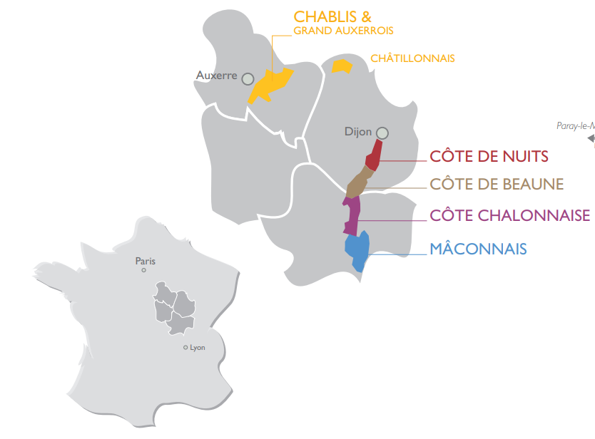 Aligoté, Bourgogne Passe-tout-grains, Coteaux Bourguignons et Crémant de Bourgogne).
