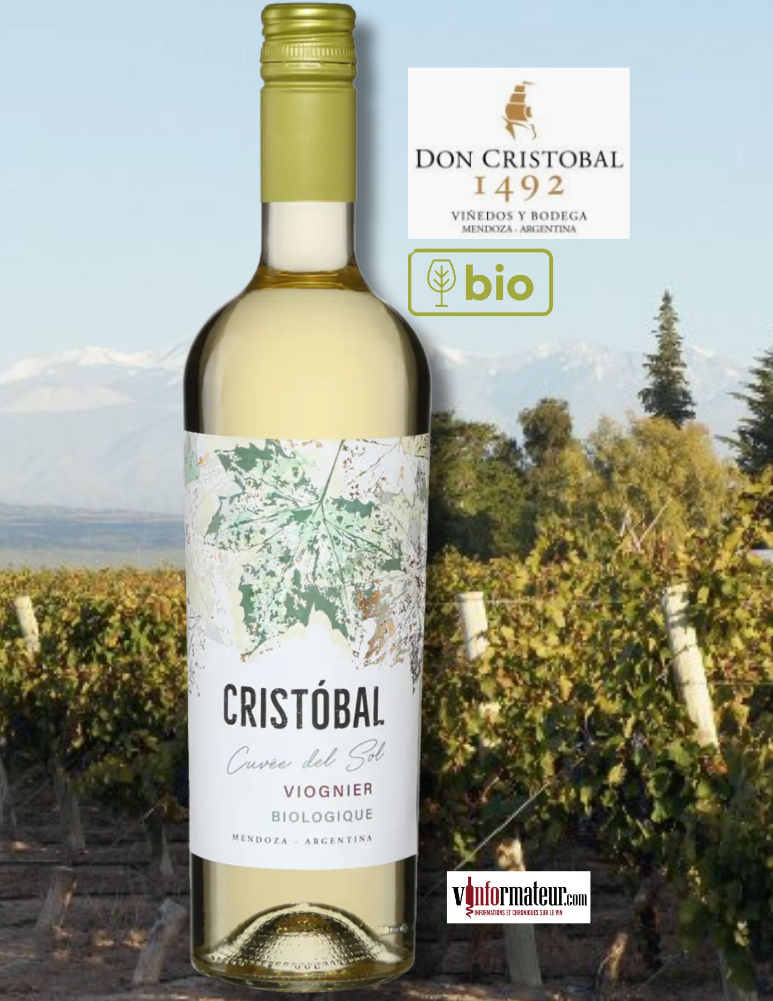 Cristobal, Viognier, Cuvée del Sol, Argentine, Mendoza, vin blanc bio, 2024