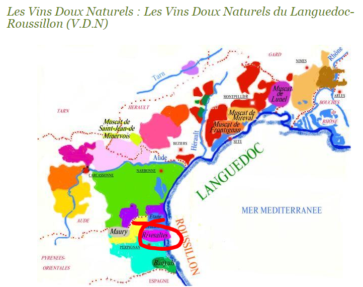 Le Muscat de Rivesaltes est un vin doux naturel (VDN) dont la fermentation a été arrêté par mutage c’est-à-dire par l’ajout d’alcool neutre vinique titrant au minimum 96 % vol.
