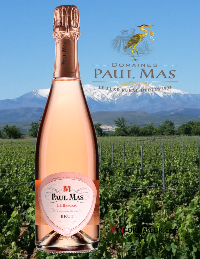 Paul Mas, Le Berceau, Brut, vin mousseux rosé, 2019, 14,85$, cépages : Pinot grigio, Pinot noir, Pinot blanc, Grenache gris, sucre : 9.8 g/l, alc. : 12%, code SAQ : 12841510.