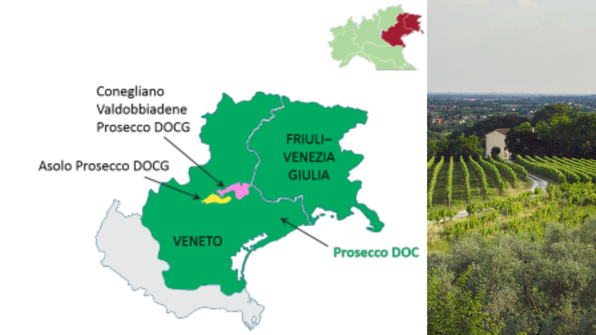 Le Prosecco est un cépage, un nom de produit et aussi une appellation. Ce Caraterre provient de l’appellation Prosecco DOC qui est une zone qui couvre maintenant à la fois la Vénétie et le Frioul (Friuli-Venezia Giulia). Jusqu’à 556 communes viticoles ont le droit d’élaborer du vin blanc effervescent sous cette appellation.