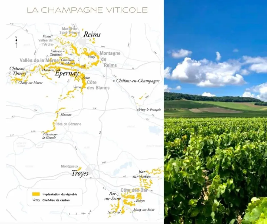 Ce Champagne bio provient de Champagne et plus spécifiquement de Montagne de Reims l’un des territoires historiques les plus réputés. Située entre Reims et Épernay, cette vaste colline boisée forme un arc de coteaux crayeux qui accueille quelques-uns des villages les plus emblématiques de l’appellation : Bouzy, Ambonnay, Verzenay, Verzy, Mailly ou encore Beaumont-sur-Vesle.