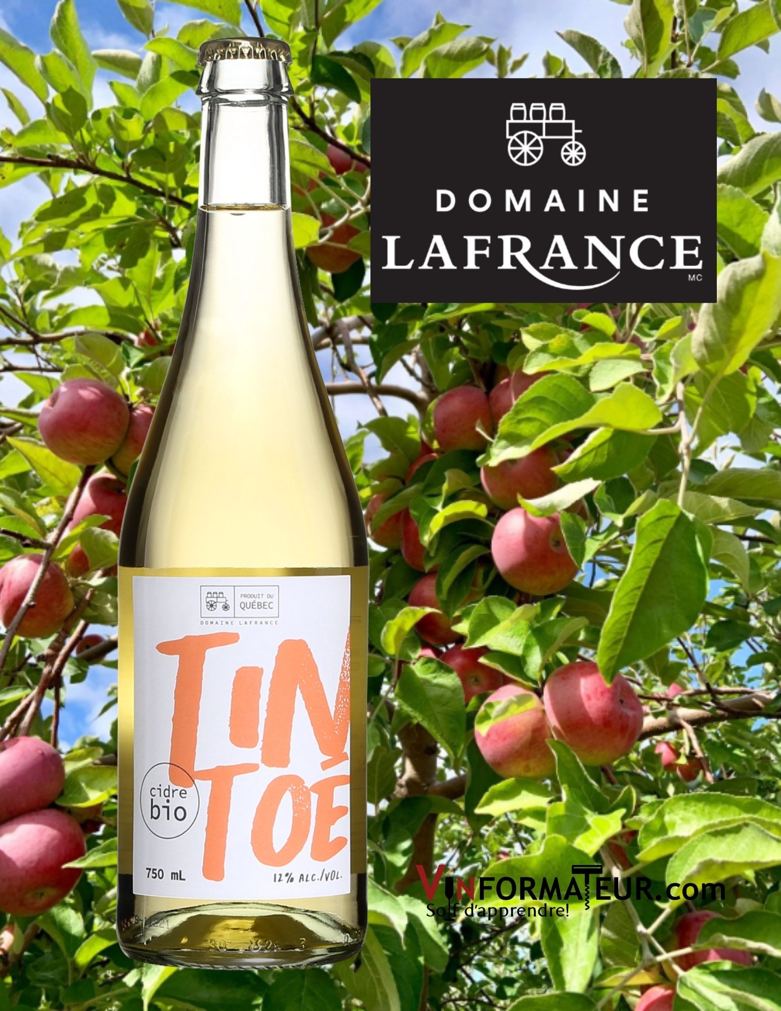 Tin Toé, Cidre Pétillant bio, Domaine Lafrance, Québec, Saint-Joseph-du-Lac, 16,30$, sucre : 13 g/l, alc. : 11%, code SAQ : 14758904.
